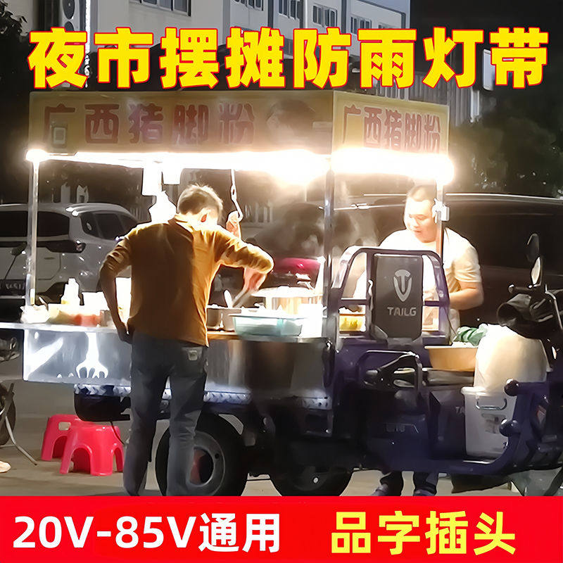 三轮车摆摊led灯带品字头地摊灯夜市灯条户外防水24v-85v自粘灯带