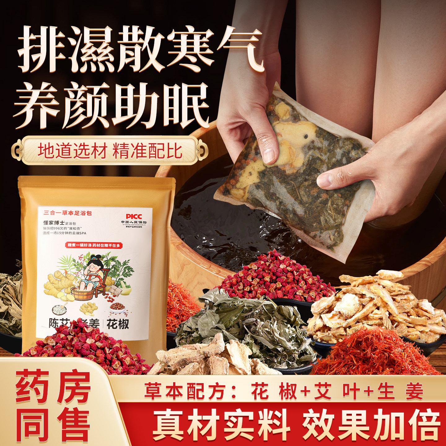 泡脚药包去湿气排毒助睡眠艾草叶生姜花椒红花中药非祛湿寒足浴包