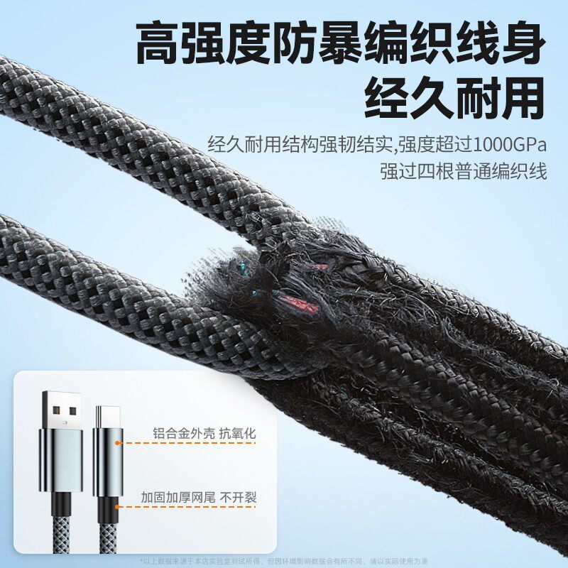 合金冰感编织加粗数据线240W快充Type-C适用华为荣耀小米OPPOvivo手机iPad平板充电宝蓝牙耳机鼠标键盘充电线