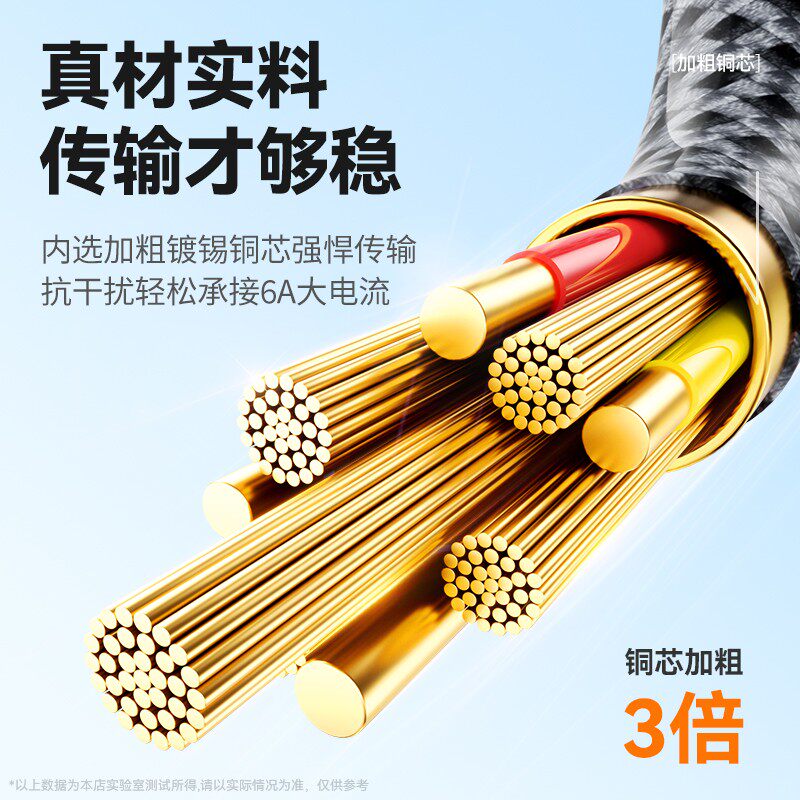 【100W超级快充】数据线三合一拖三充电器一拖3车载通用手机usb多头二用多功能适用华为苹果typec安卓6A