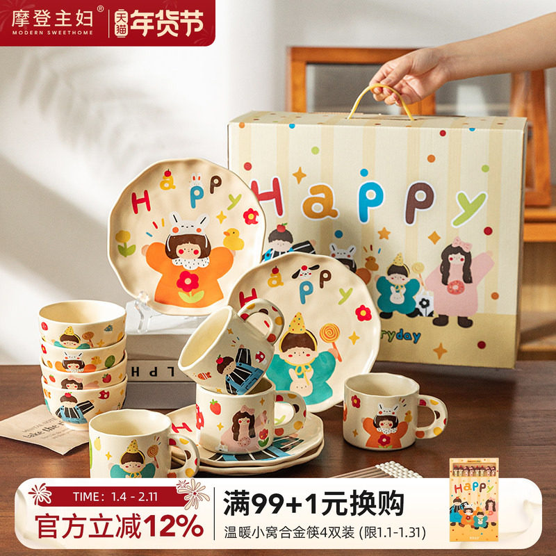 摩登主妇一家三口餐具结婚新婚乔迁新居搬家闺蜜生日礼物碗盘套装