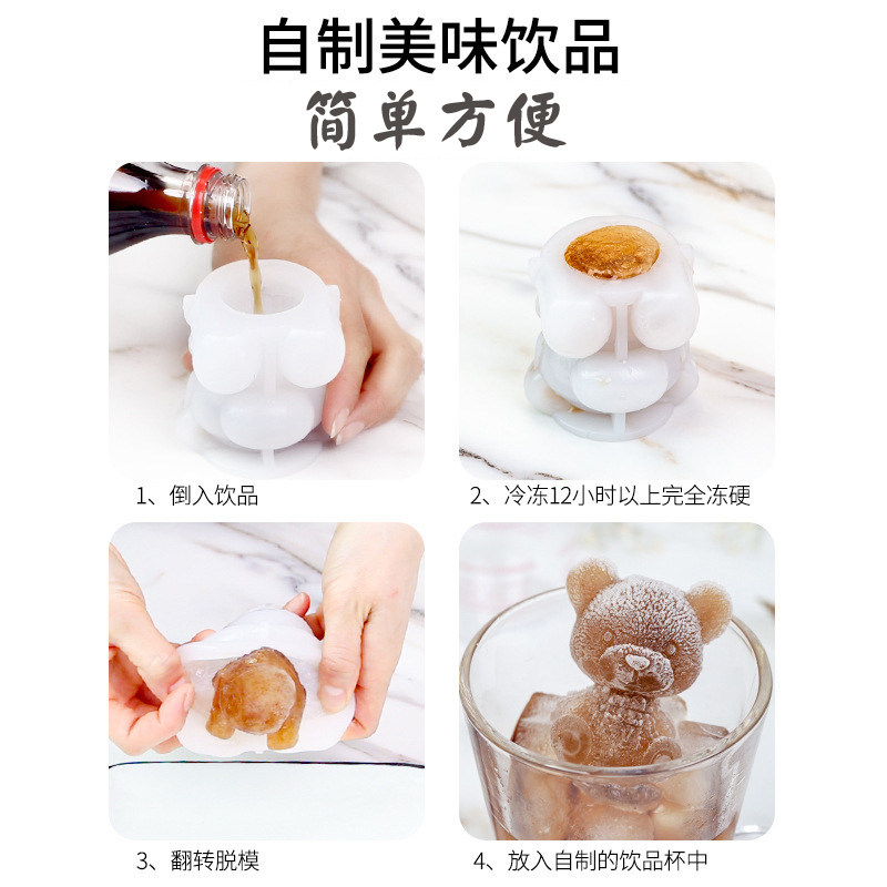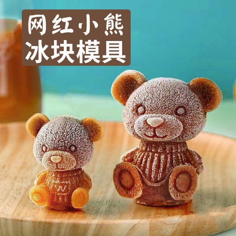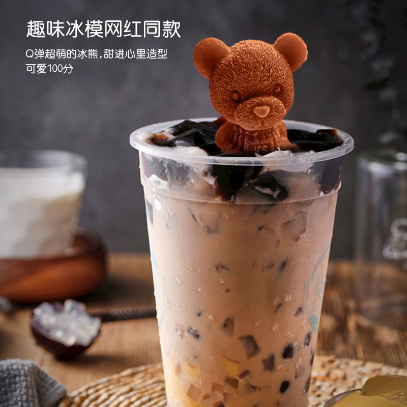 小熊冰块模具硅胶冰格家用储冰制冰盒带盖冰箱网红冰熊冻冰块神器