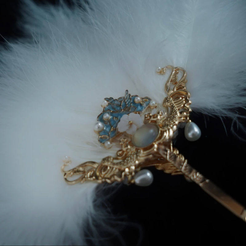 新中式羽毛扇子可当发簪汉服头饰羽毛发饰古装仙气古风发鬓配饰品