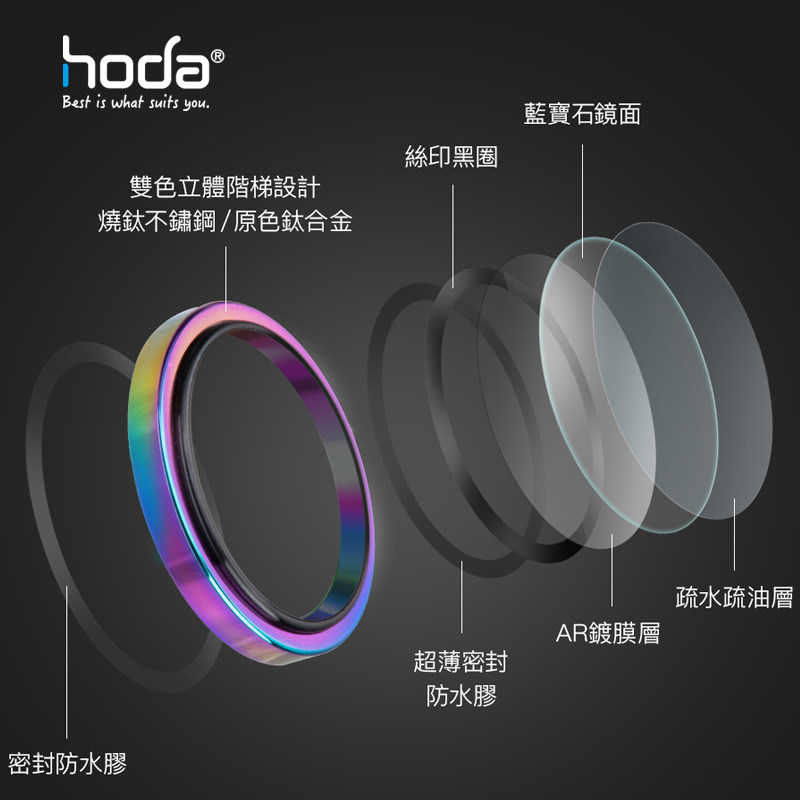 Hoda好贴蓝宝石镜头膜适合于苹果iPhone17ProMax烧钛色16Pro抗刮防油原机结构立体阶梯闪粉银钻16镜头贴
