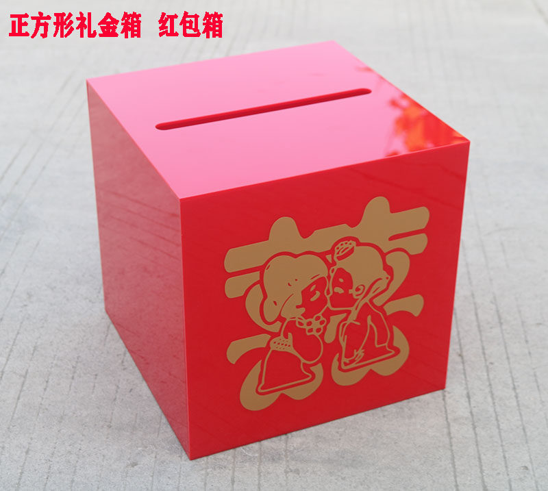 亚克力红色带锁结婚礼金箱 婚礼红包箱 婚庆用品红包箱 收礼金盒
