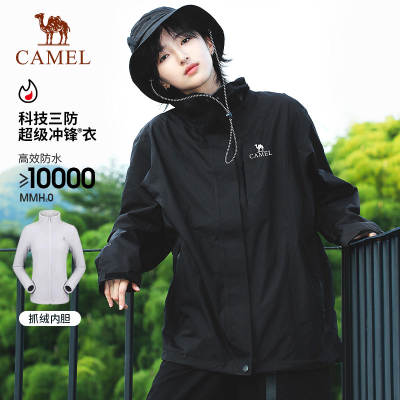 骆驼冲锋衣三合一可拆卸两件套男女情侣款外套户外防水旅游登山服