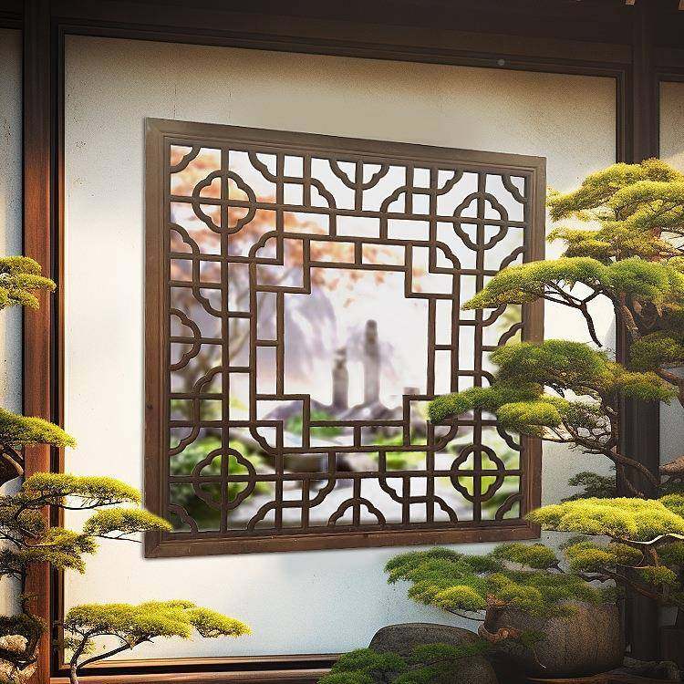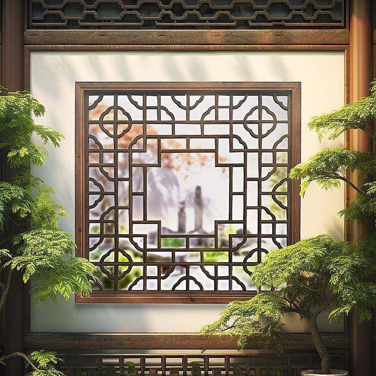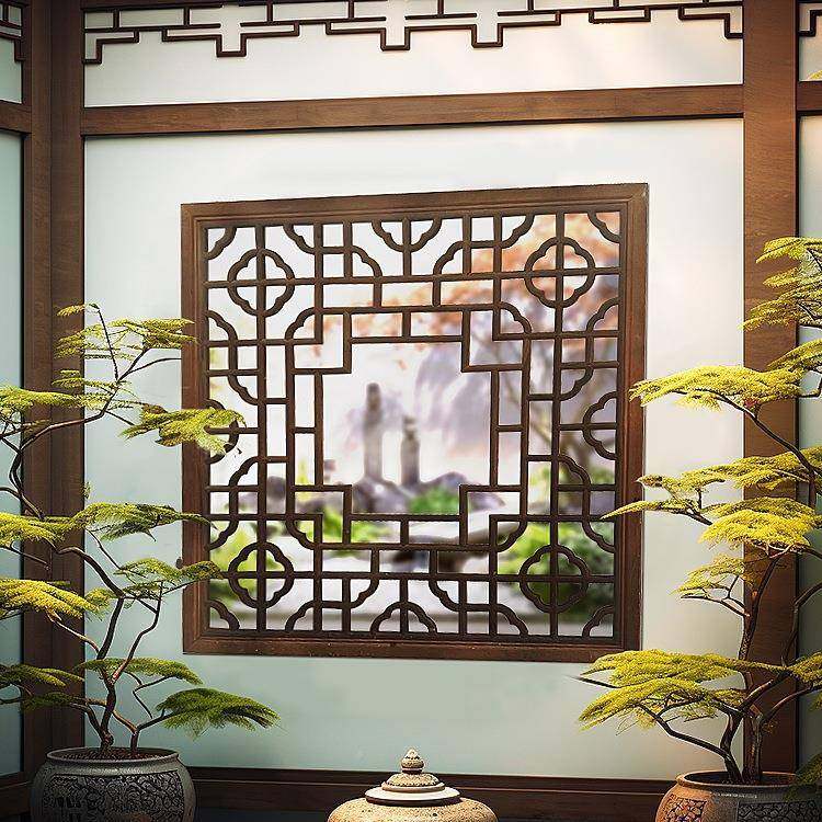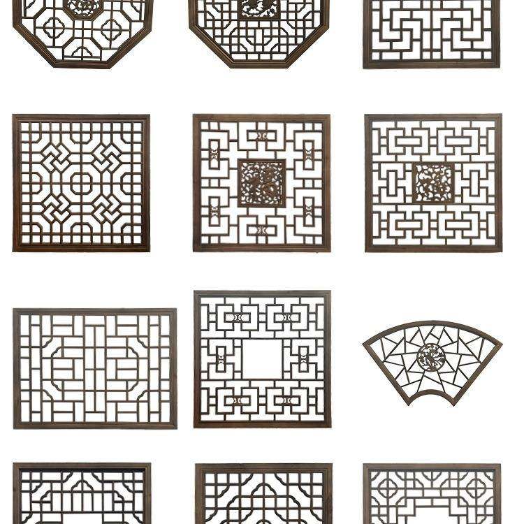 花东阳木雕门窗实31886木格窗仿花格栅中式玄关隔断八角圆形格栅古定