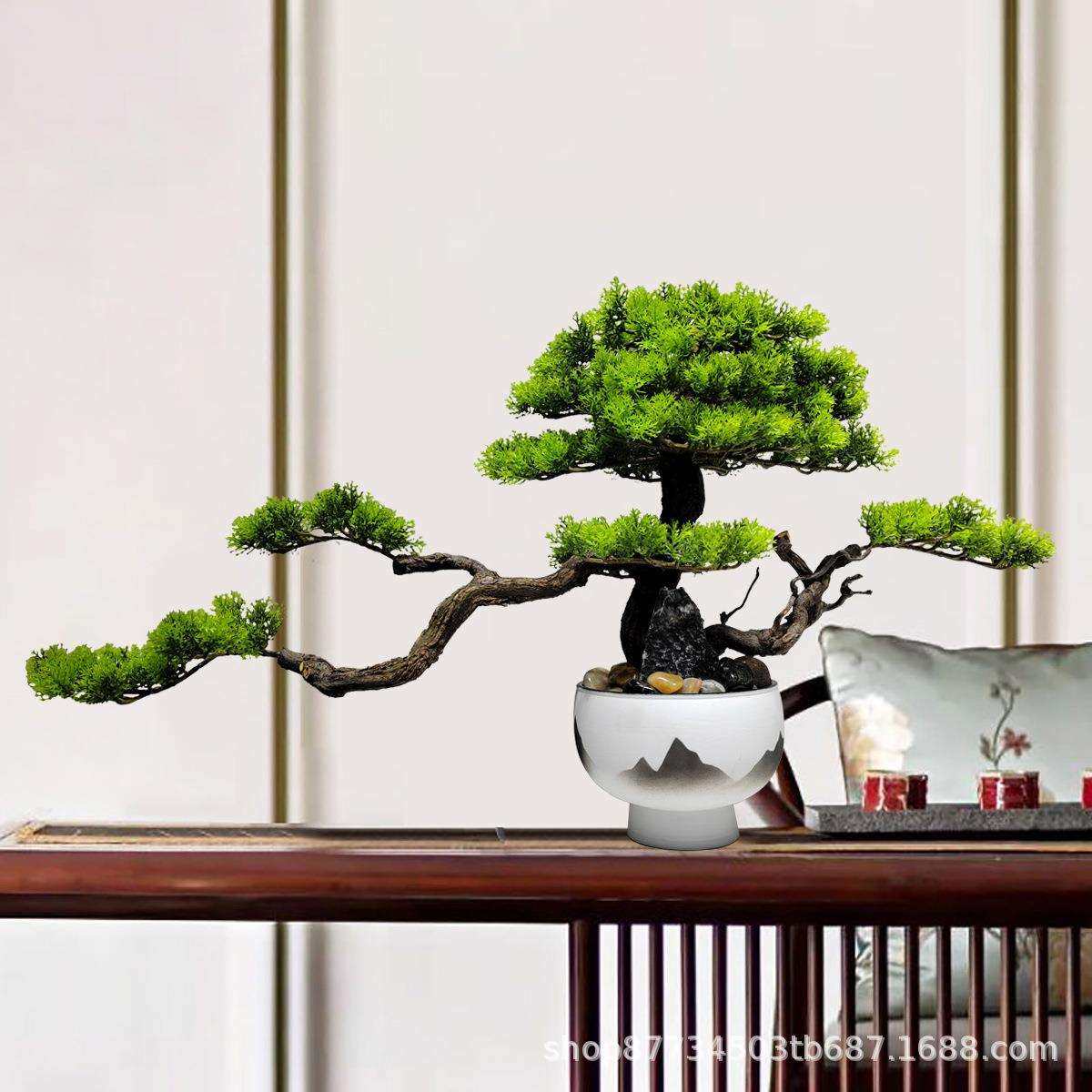 仿真迎客松盆栽绿植假树软装新中式客厅摆件办公室酒店盆景装饰品