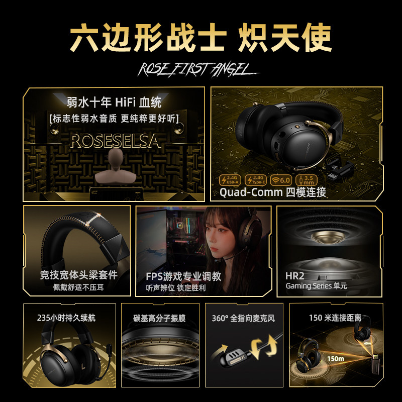 弱水时砂炽天使[AG无畏契约推荐]头戴式耳机游戏电竞无线电脑耳麦