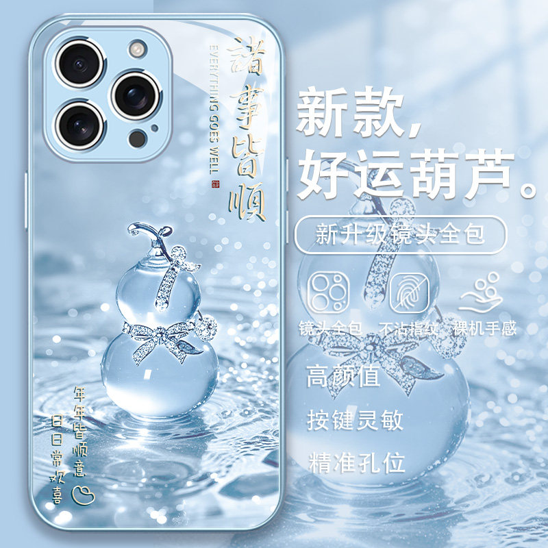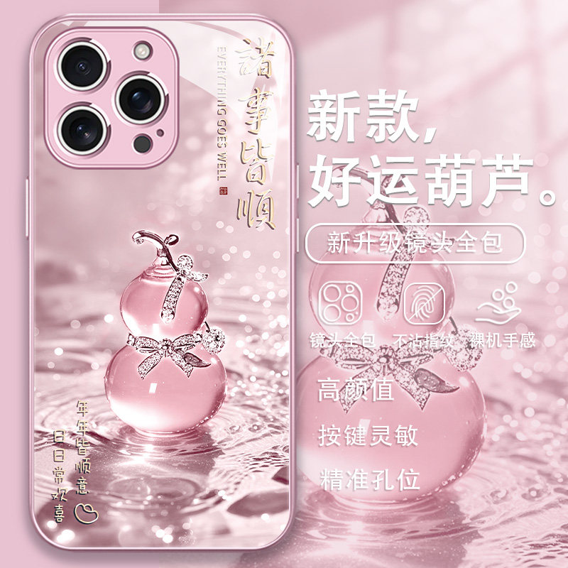 适用iPhone16手机壳好运葫芦17/15promax新款苹果14网红13min马年12高级感xs小众11绿色xr套x玻璃8plus7秋冬