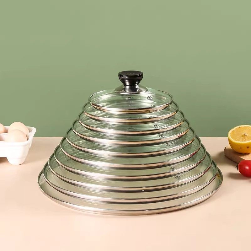 锅盖家用钢化玻璃32cm炒锅30/28/26不锈钢蒸锅耐高温盖子把手防烫