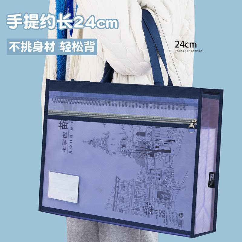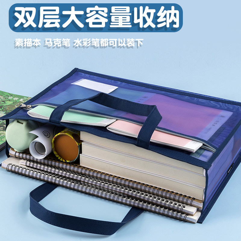 大号A3美术袋8k透明文件袋手提拉链儿童补习袋大容量画袋书本收纳网纱小学生加厚手拎素描本画画工具资料包