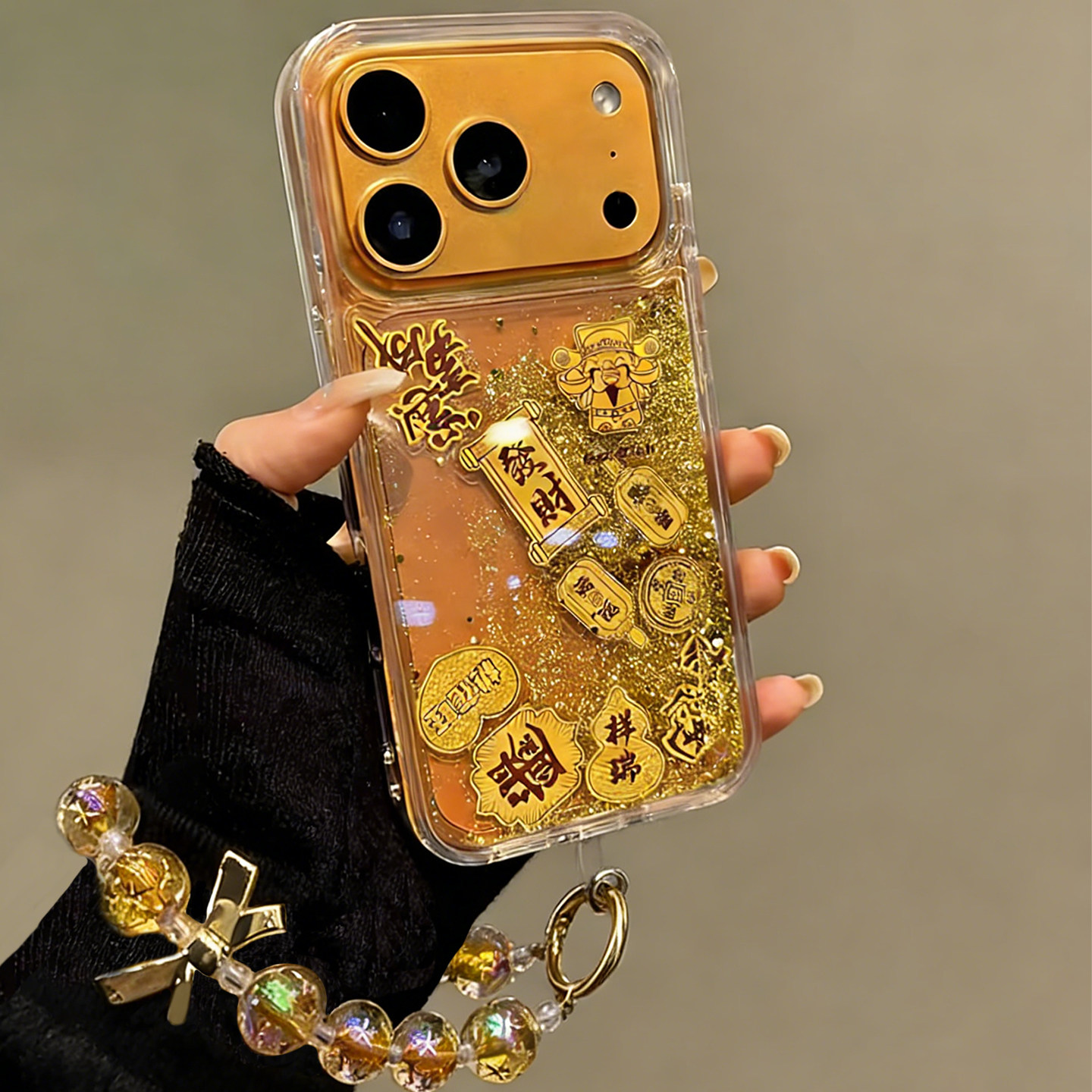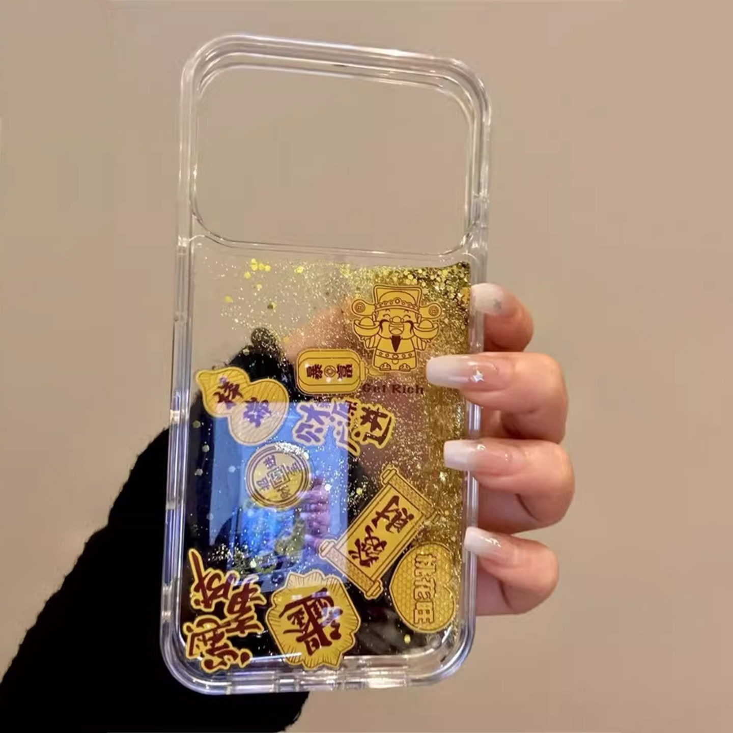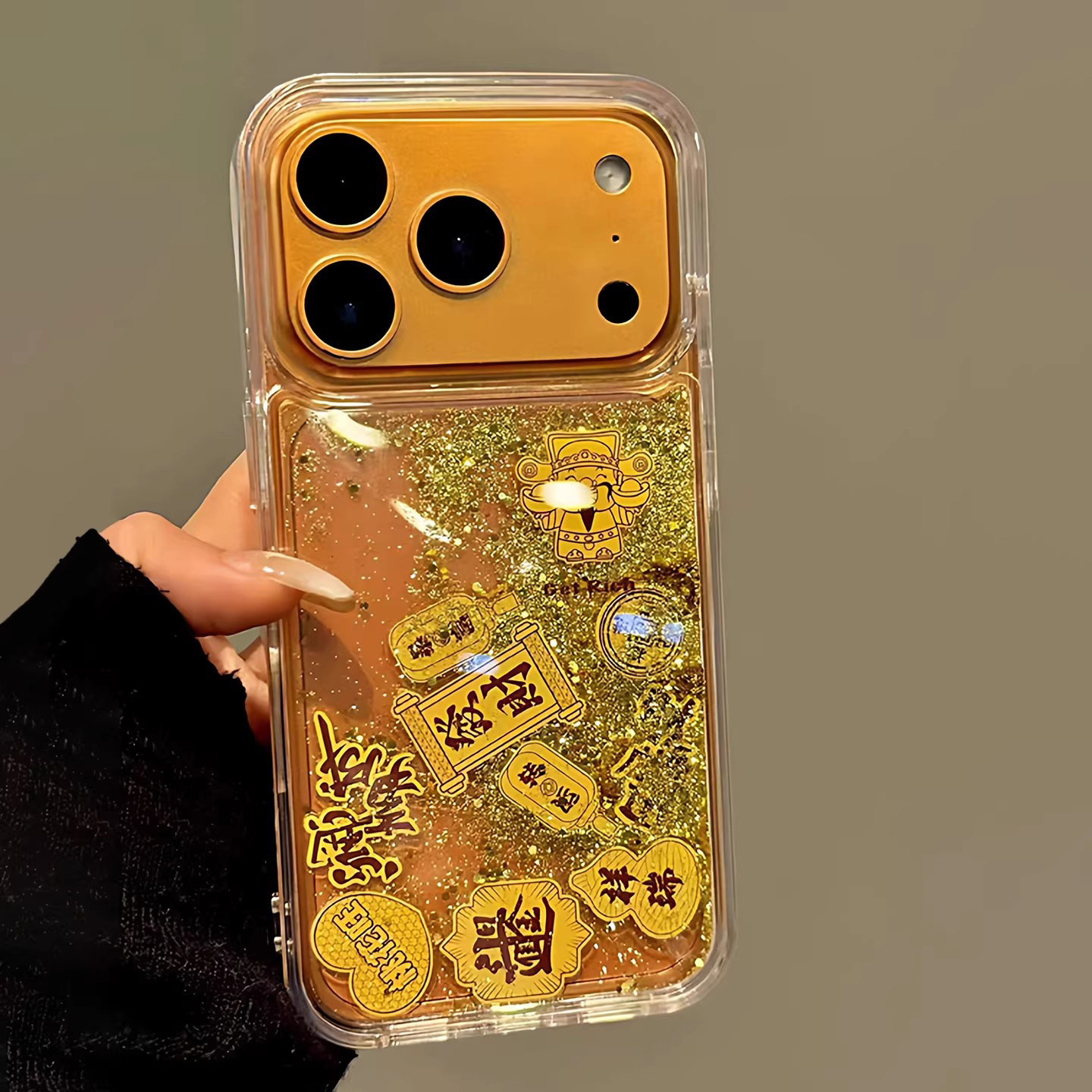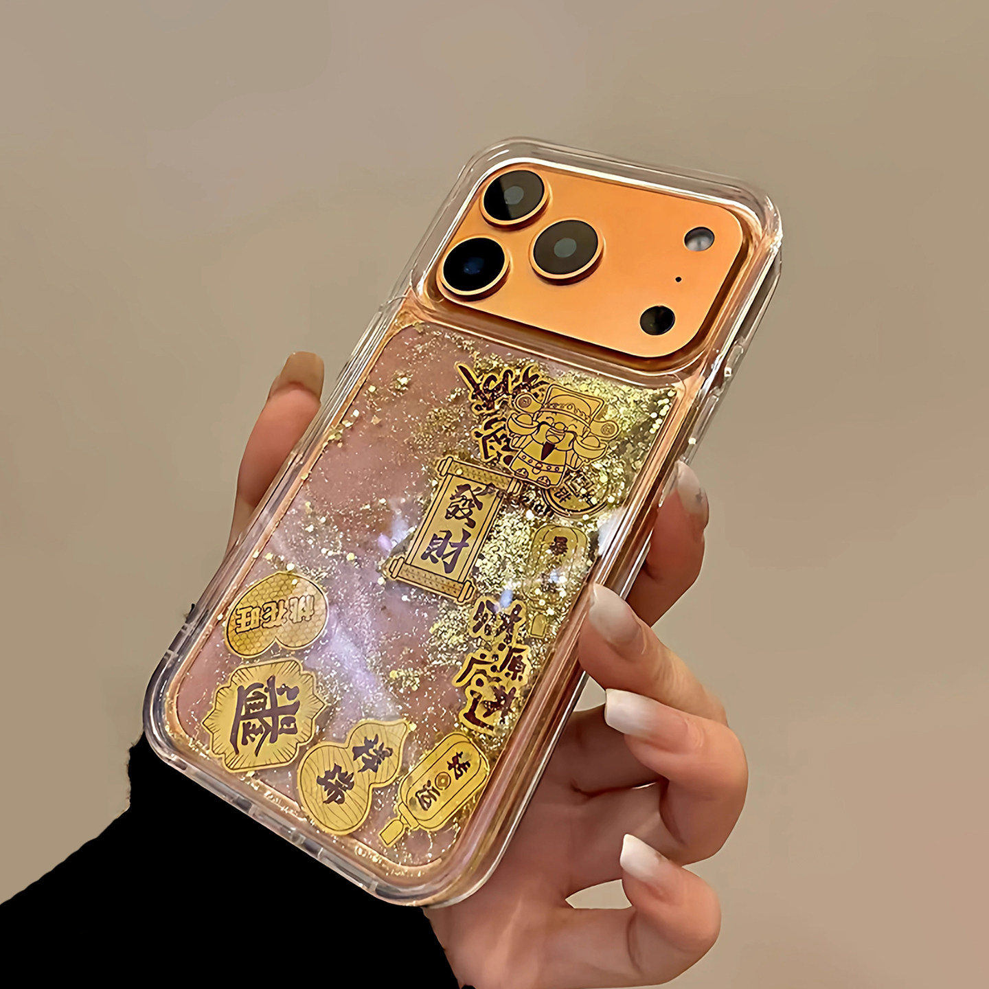 流沙金箔 适用苹果17promax手机壳新款iPhone16promax苹果16pro发财15苹果13pro苹果17招财14plus保护套新品