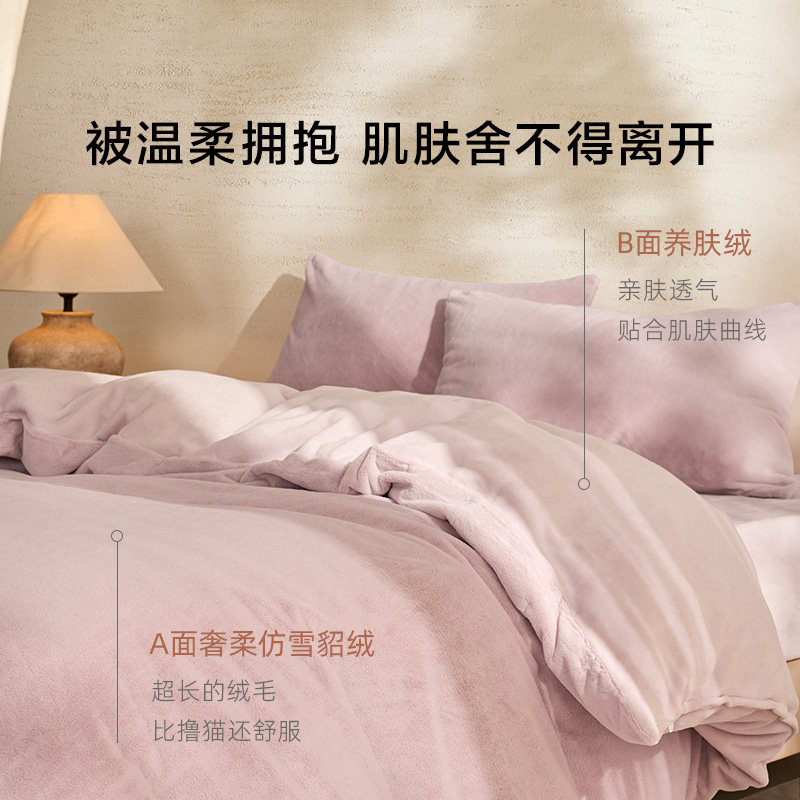 罗莱家纺秋冬宿舍仿貂绒双面暖绒A类床单床笠被套毯双人床四件套