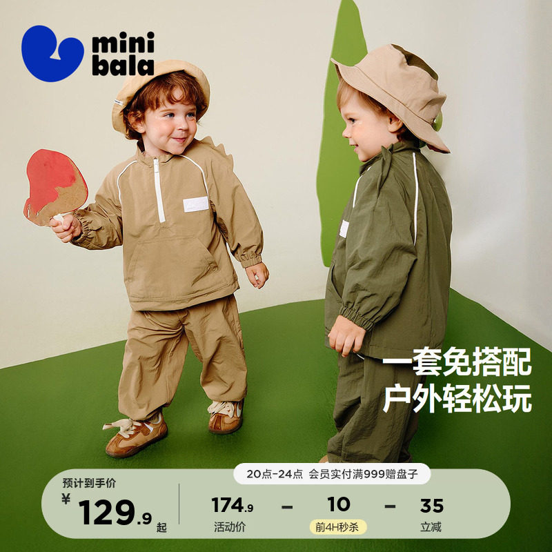 迷你巴拉巴拉男童宝宝长袖套装户外宽松外套长裤两件套春新品