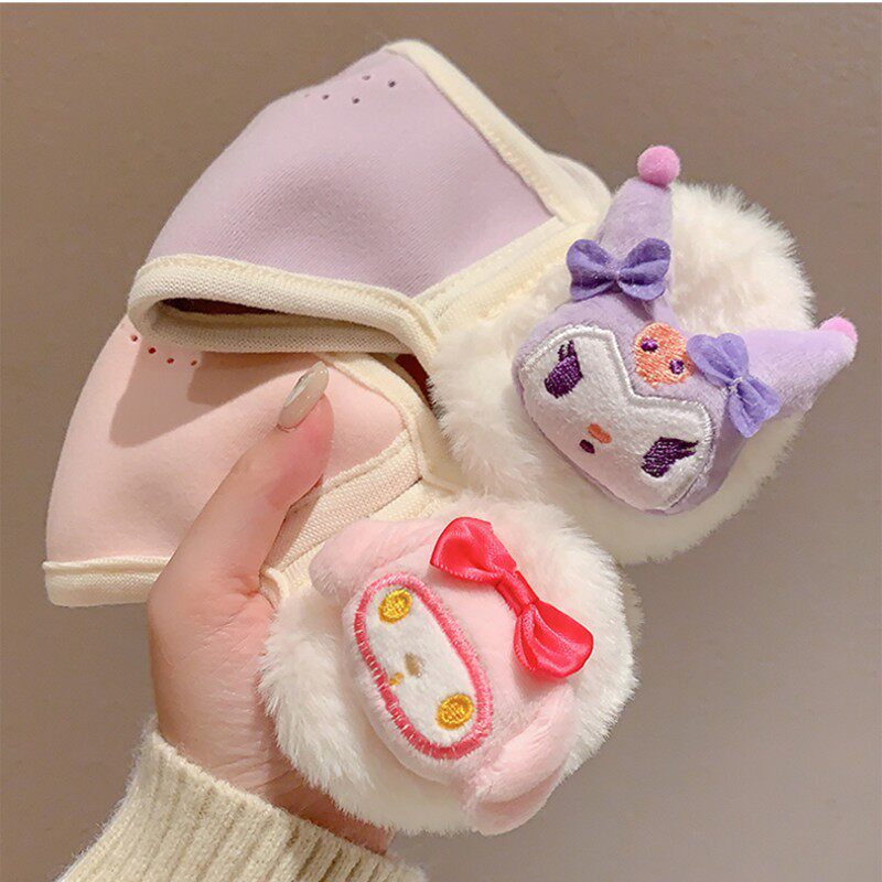 可爱充棉库洛米儿童保暖口罩耳罩一体女童防寒护耳加绒厚面罩耳罩