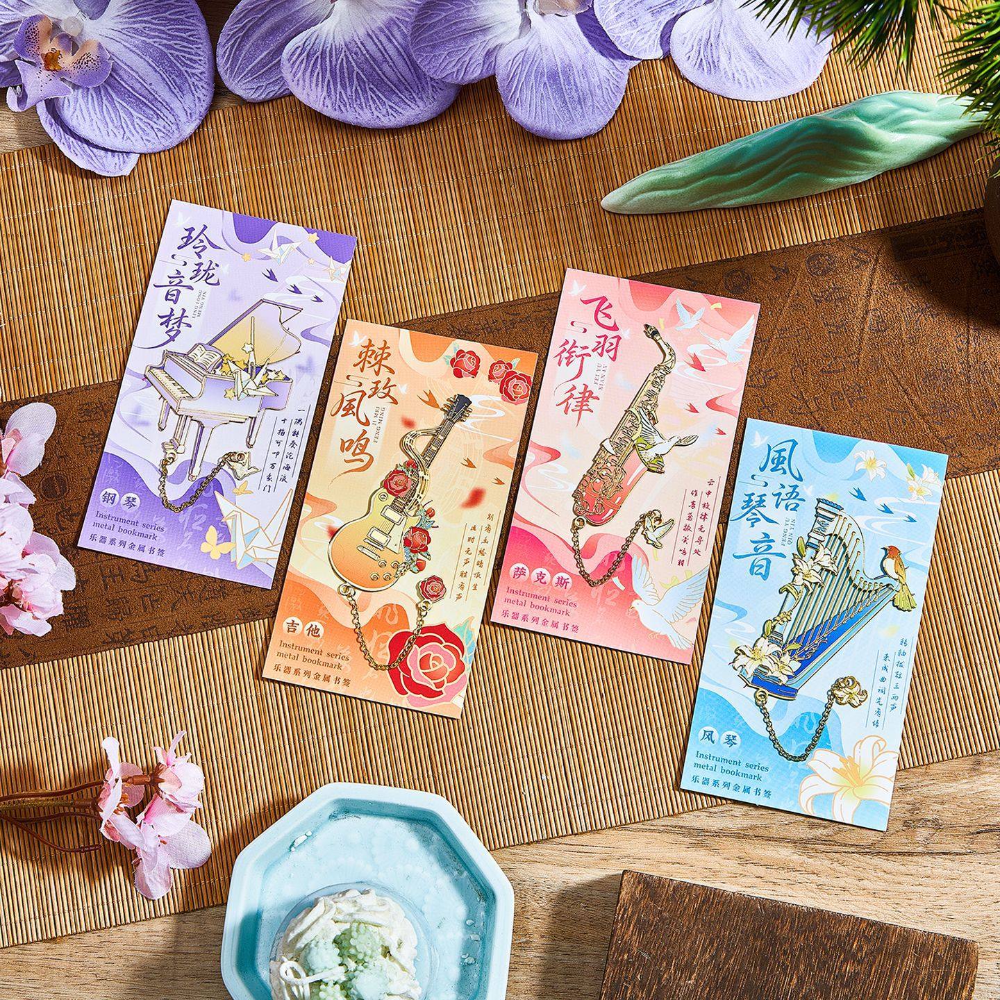 金属乐器书签钢琴吉他竖琴萨克斯琵琶古琴学生音乐文具套装礼物