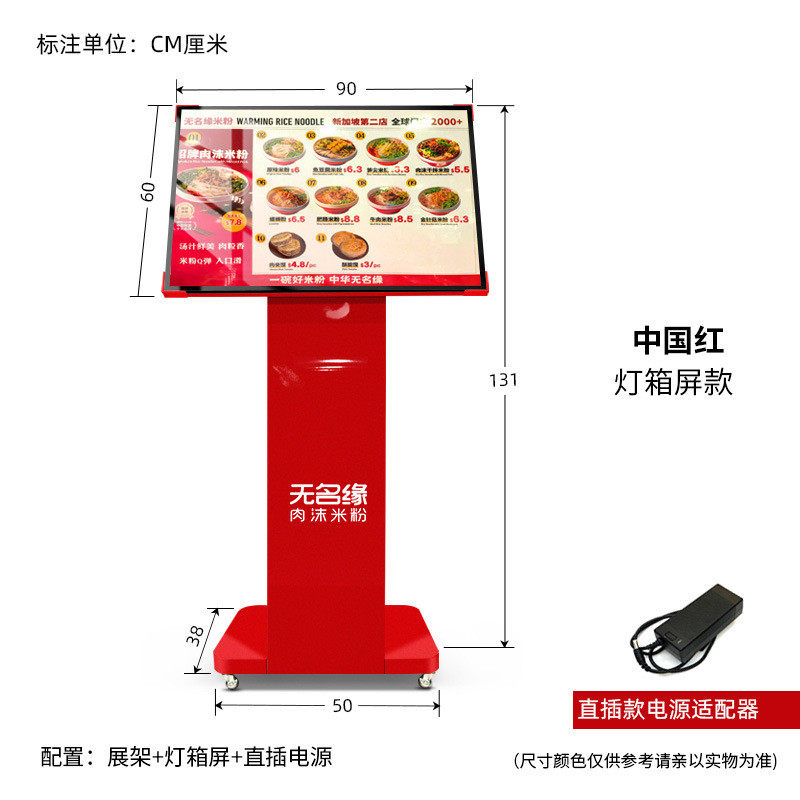 led灯箱点餐展示架落地式钢化玻璃灯箱屏支架展架广告牌万向轮
