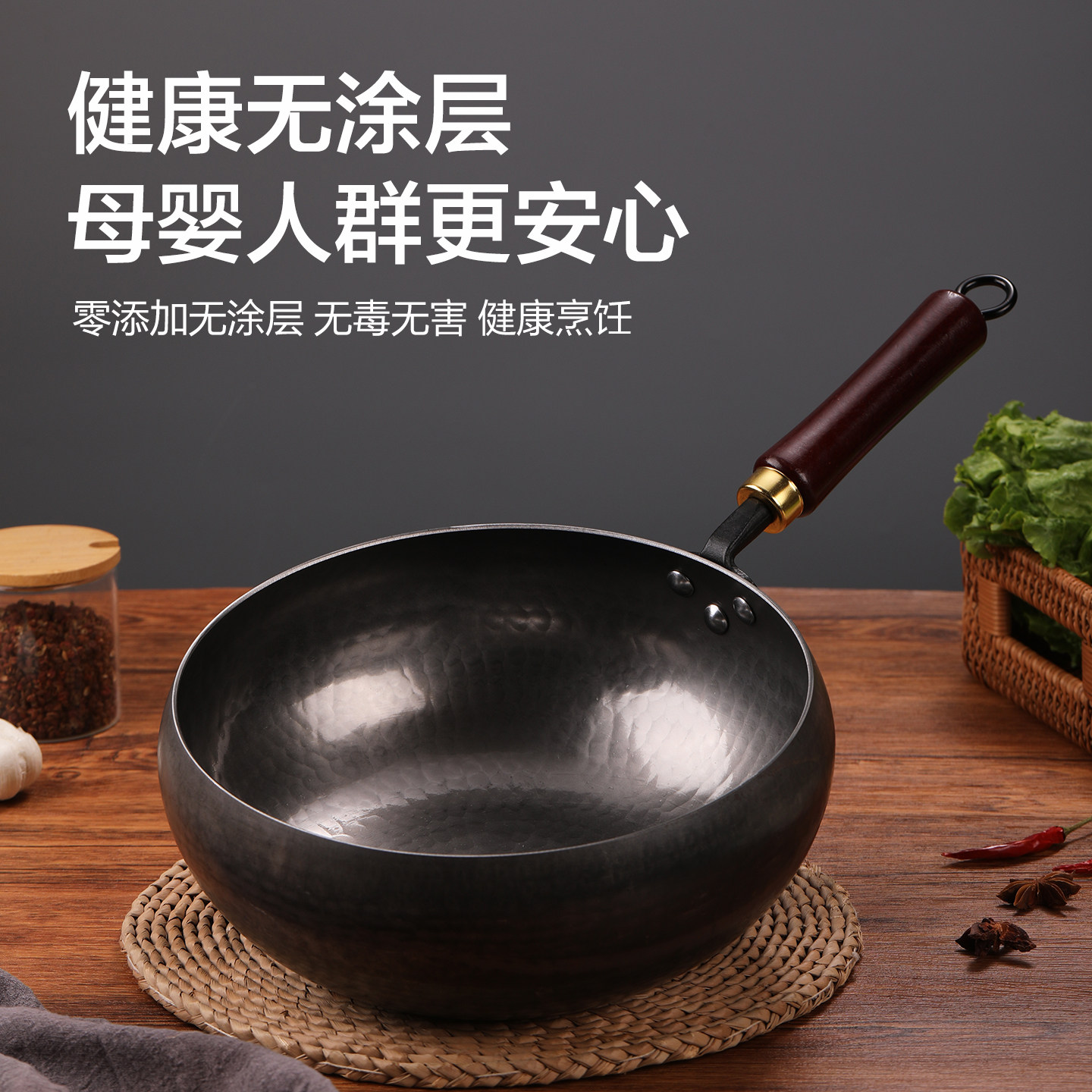 铁锅官方旗舰炒菜锅老式炒锅铁锅家用不粘锅无涂层燃气灶适用