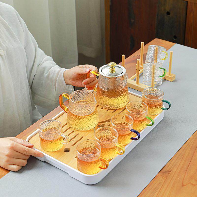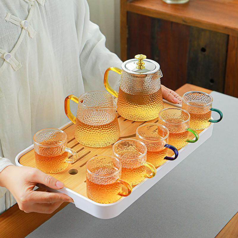 茶盘高端大气上档次耐热玻璃茶具套装家用办公室客厅功夫茶杯锤纹