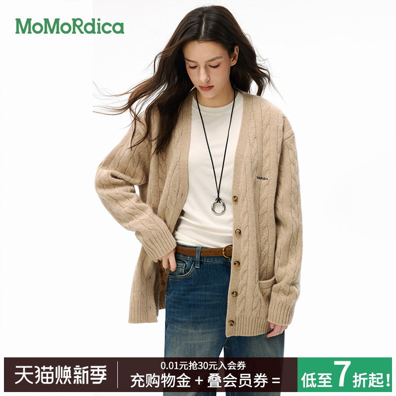 Momordica2025秋冬羊毛羊绒开衫V领毛衣