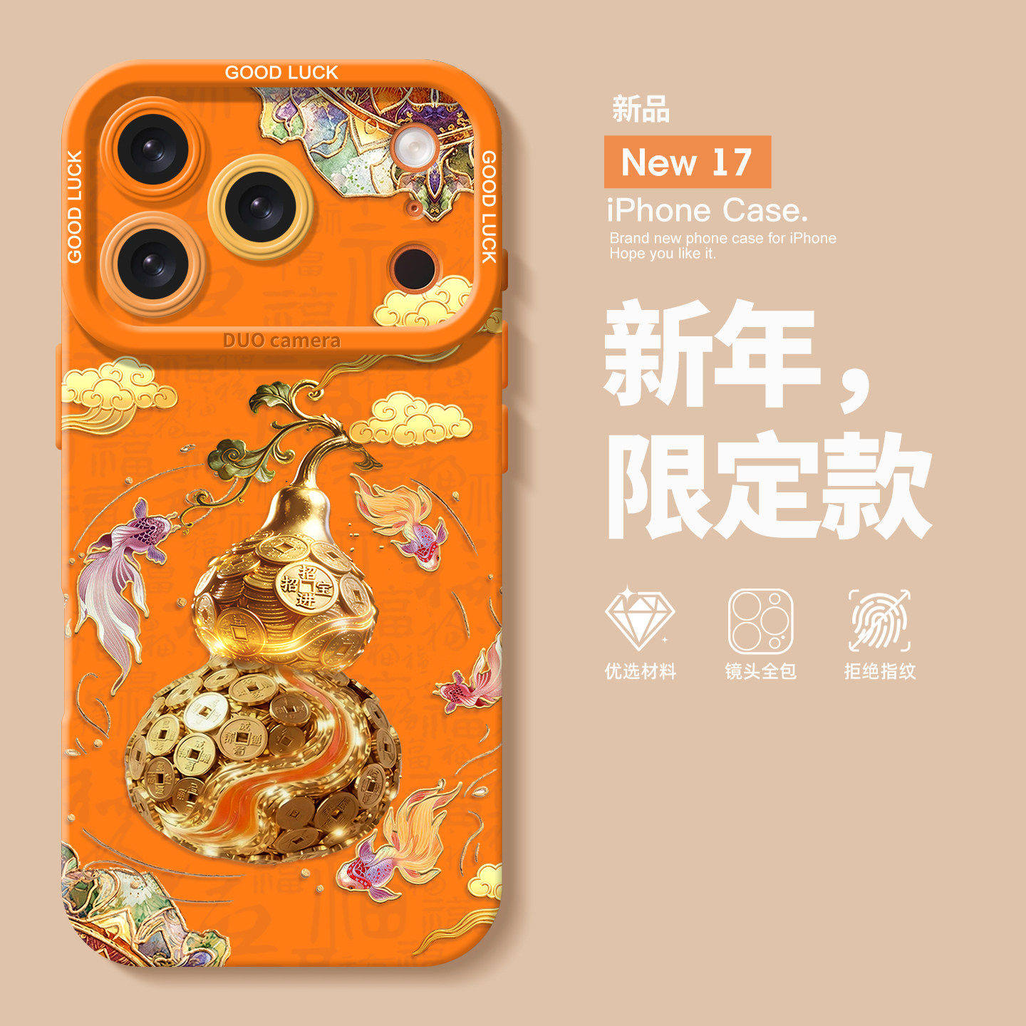 适用苹果17promax手机壳iphone17系列16pro橙色2026新年15防摔pro硅胶max国风14全包12带挂绳17pro新款
