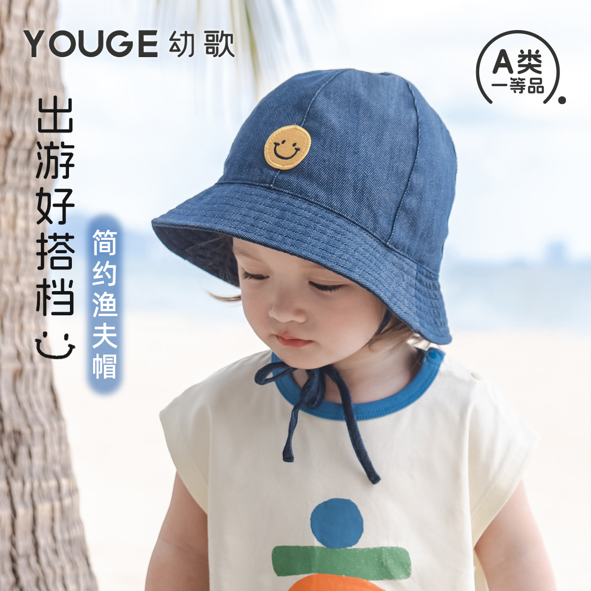 【薄牛仔】YOUGE幼歌春季新款儿童可爱笑脸牛仔渔夫帽透气防风帽