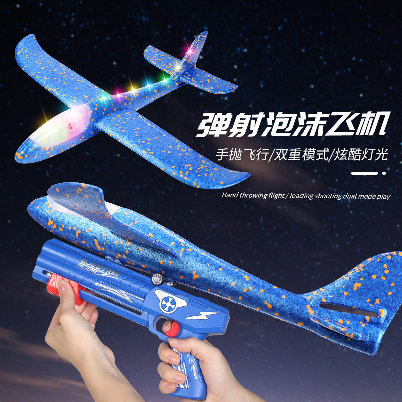 网红弹射泡沫飞机发射枪手持风筝飞天手抛儿童户外小男孩发光玩具