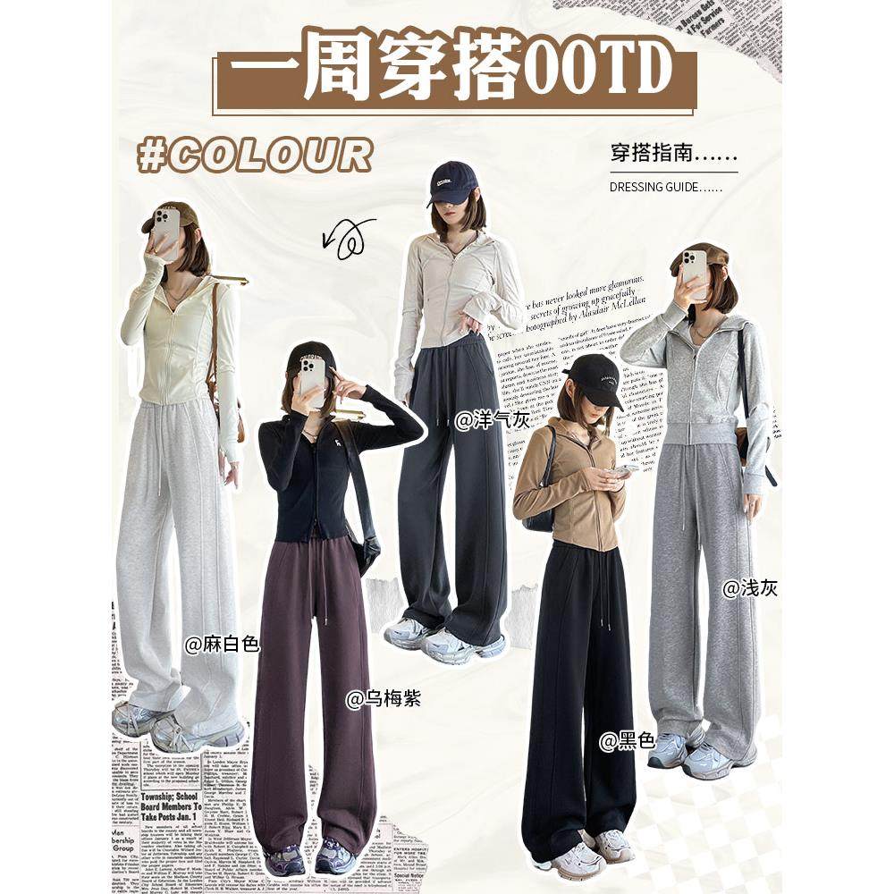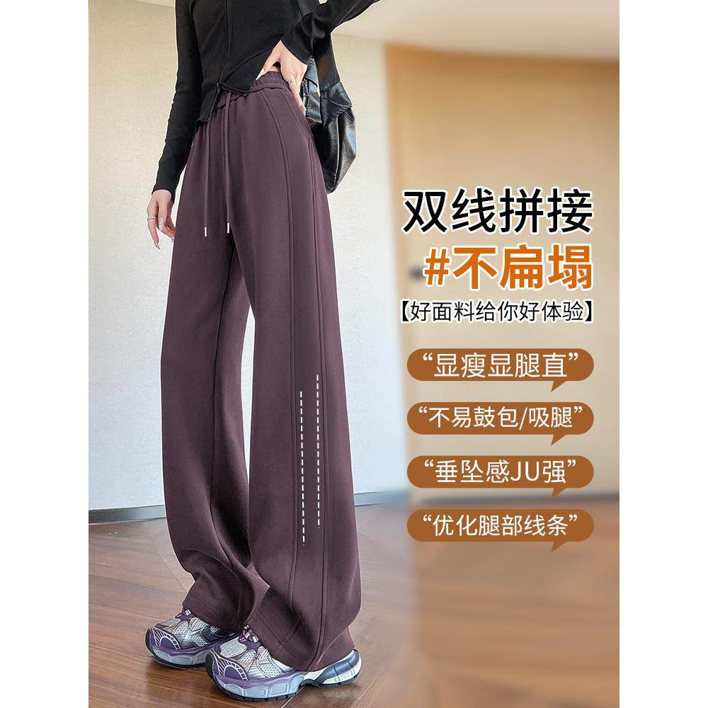 运动裤女秋冬2025香蕉阔腿裤休闲直筒卫裤加绒加长白色紫色灰色