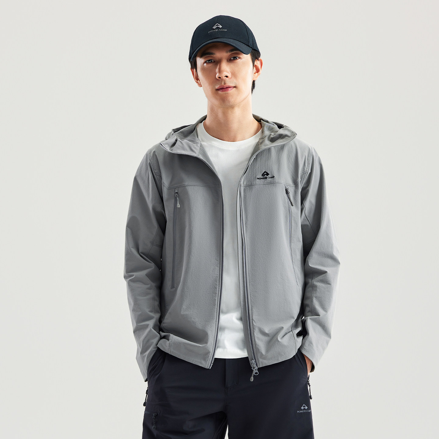 美特斯邦威男女同款夹克秋季简洁舒适防水防风运动连帽功能性外套