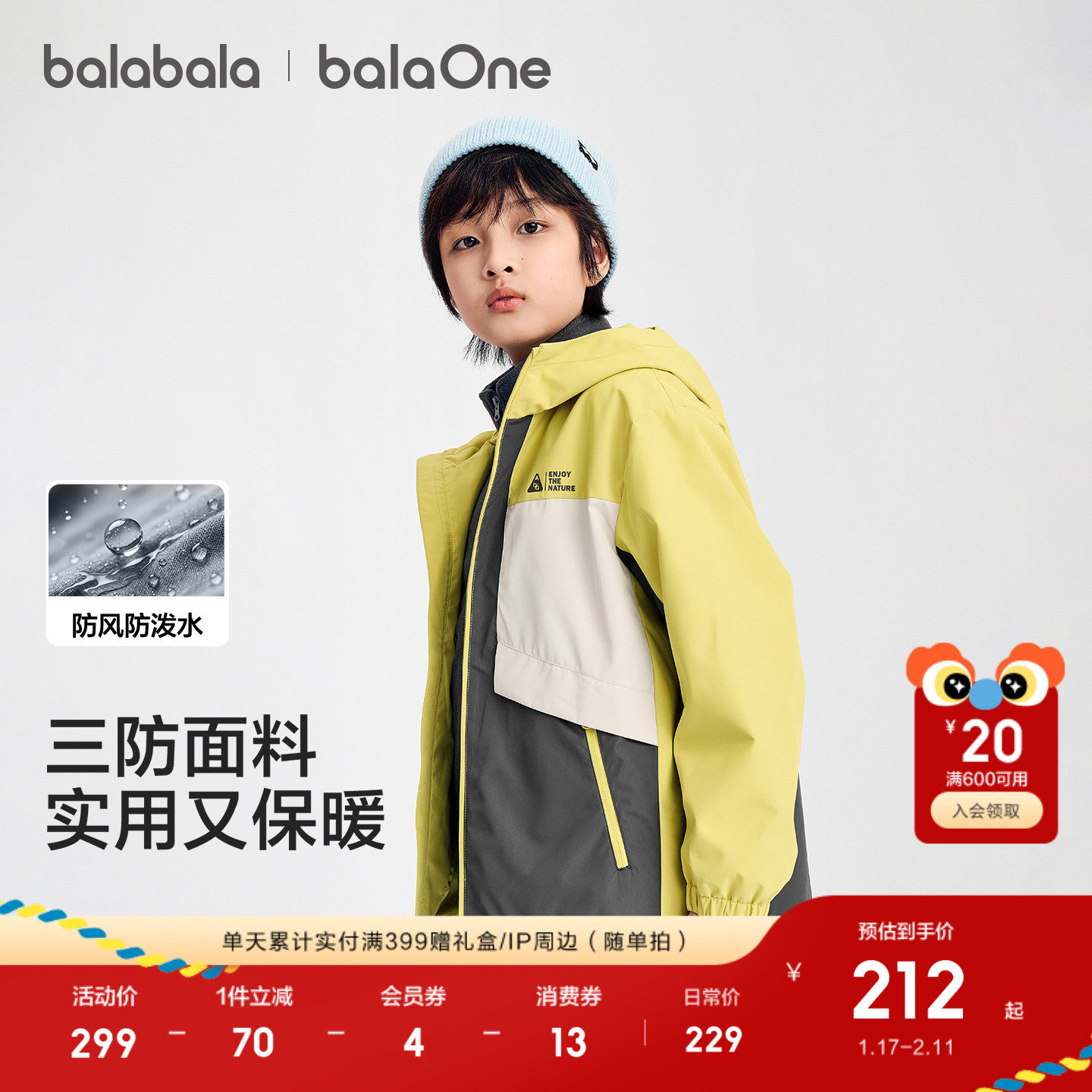 巴拉巴拉童装男童厚外套儿童上衣2026春秋装透湿两件套红色拜年服