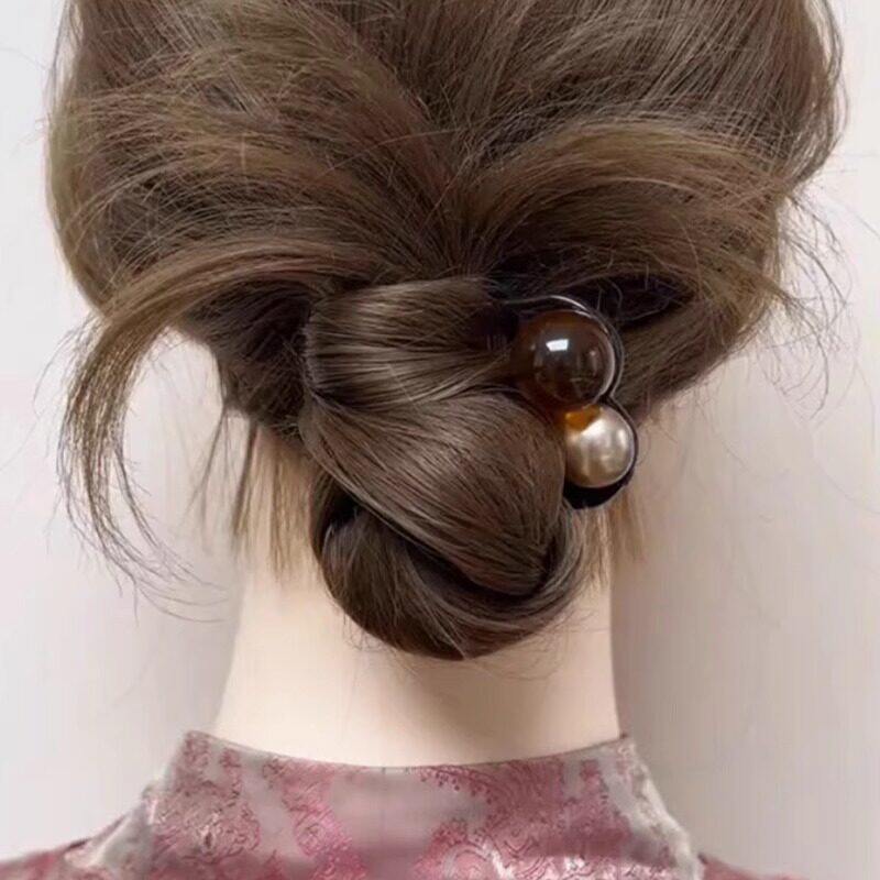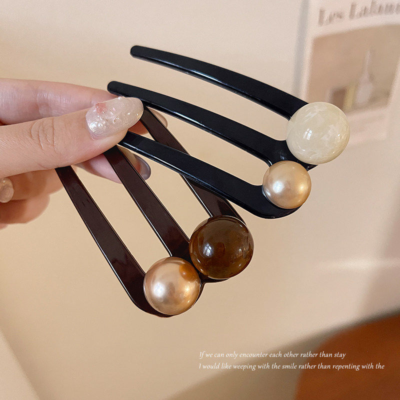 短发半扎发三齿珠珠U型发簪2026新款插梳发卡气质丸子头固定簪子