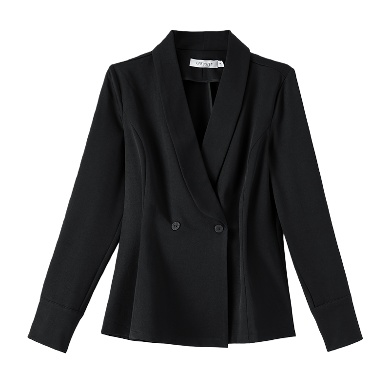 收腰显瘦、简约干练,垫肩设计,双排扣设计