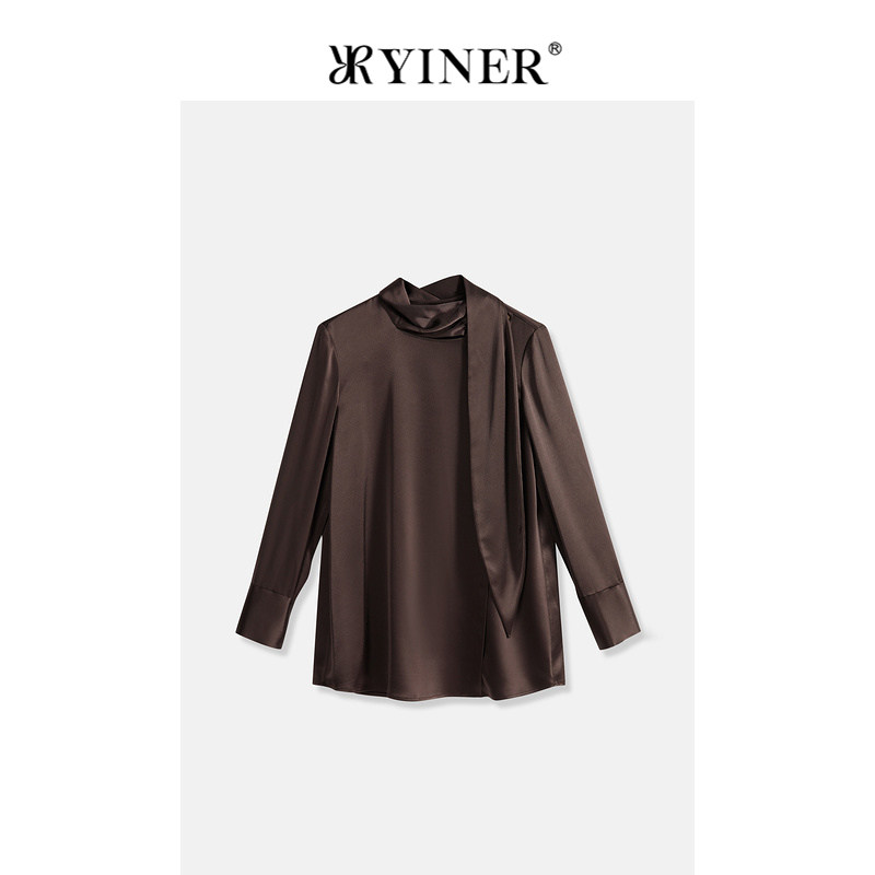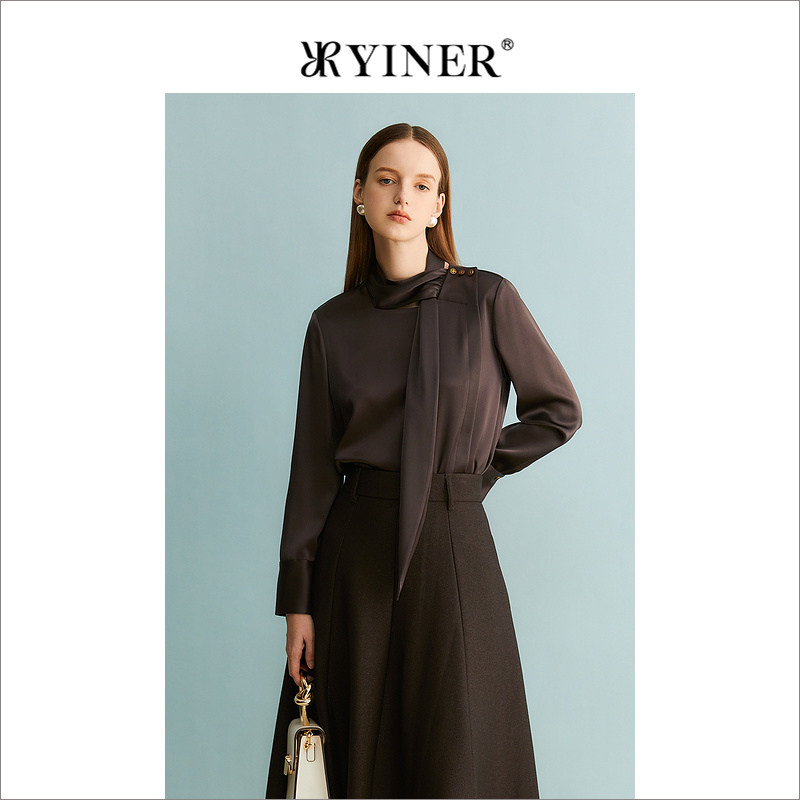 【醋酸系列】YINER音儿女装秋季设计感半高领垂顺衬衫