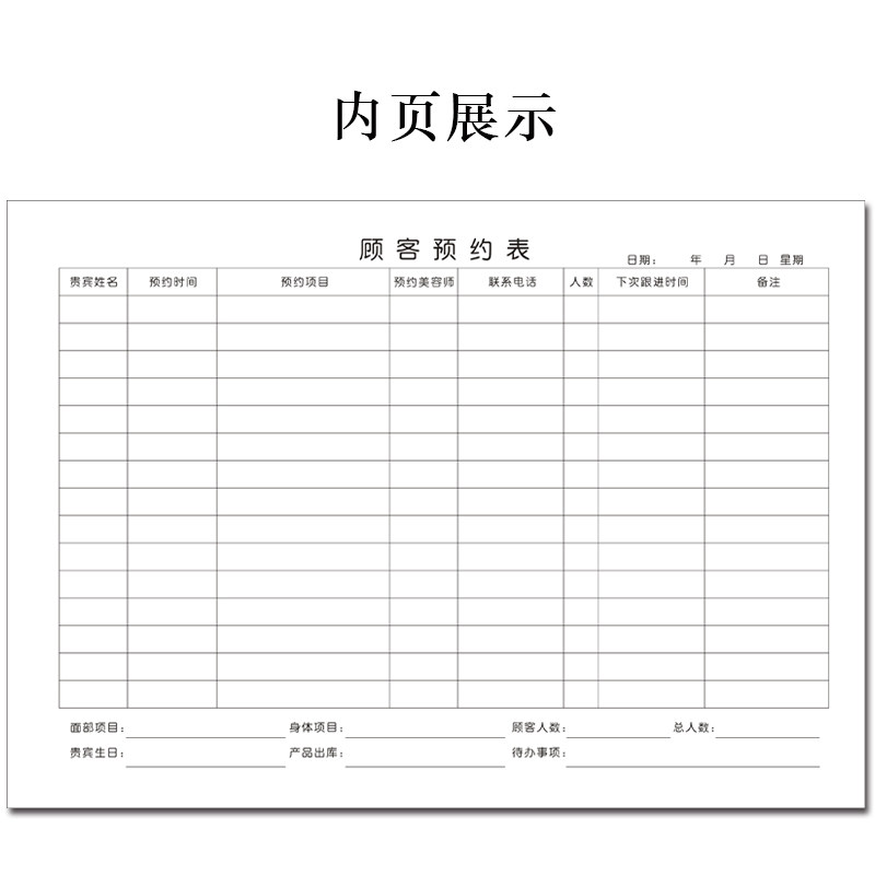 客户预约表美容院美甲美发预约时间记录本美睫理发店顾客登记管理