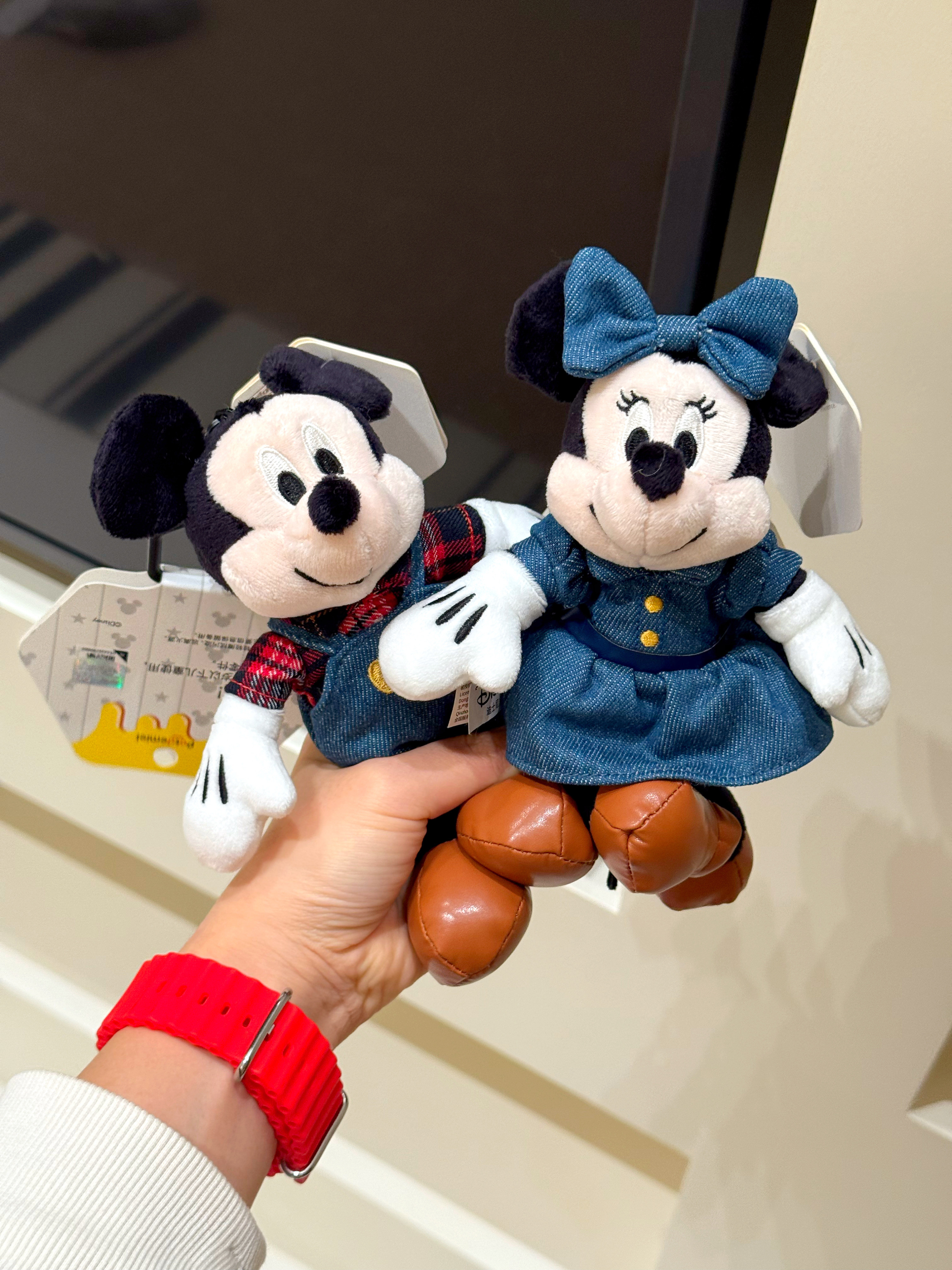 正版授权中古牛仔背带裤米奇米妮毛绒玩偶包挂件情侣款钥匙扣挂饰