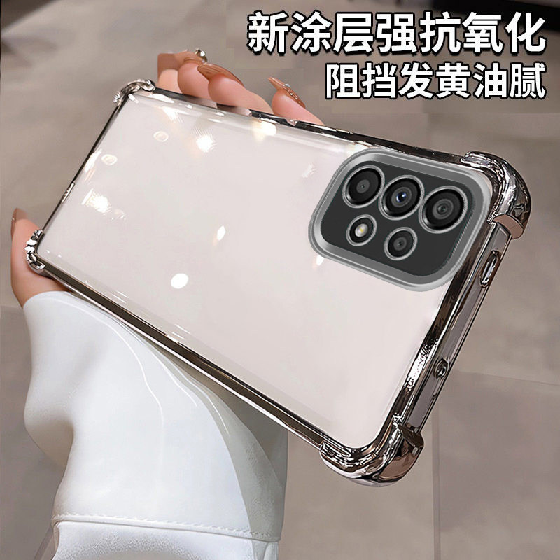 三星a53手机壳新款四角气囊硅胶防摔时尚镜头全包软壳适用Samsunga53高级感奢华强抗氧化简约电镀透明手机壳