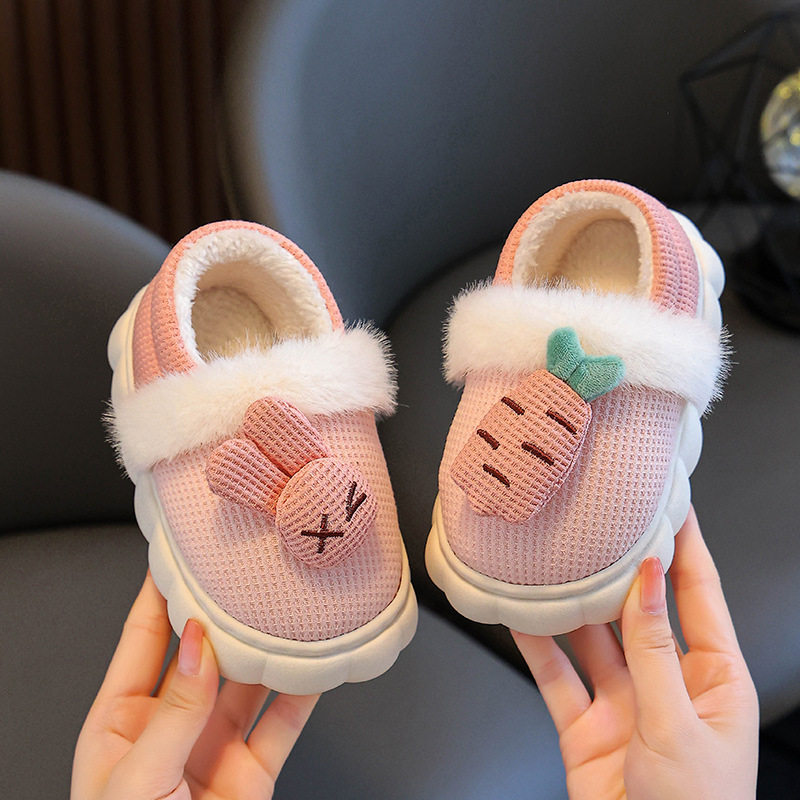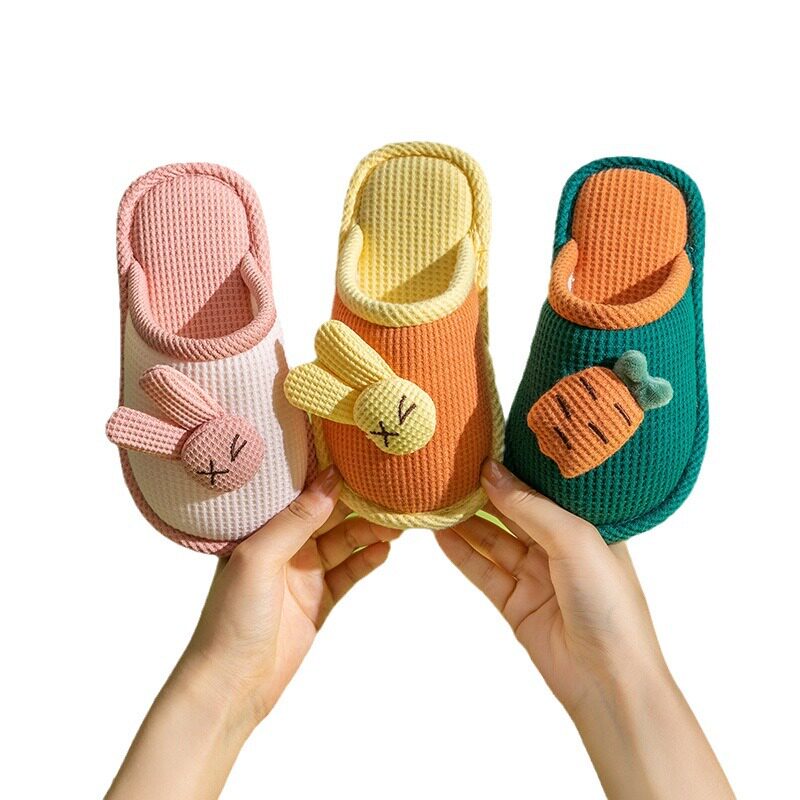 儿童棉拖鞋女童男童秋冬季家居室内防滑亲子宝宝棉麻拖鞋卡通图案
