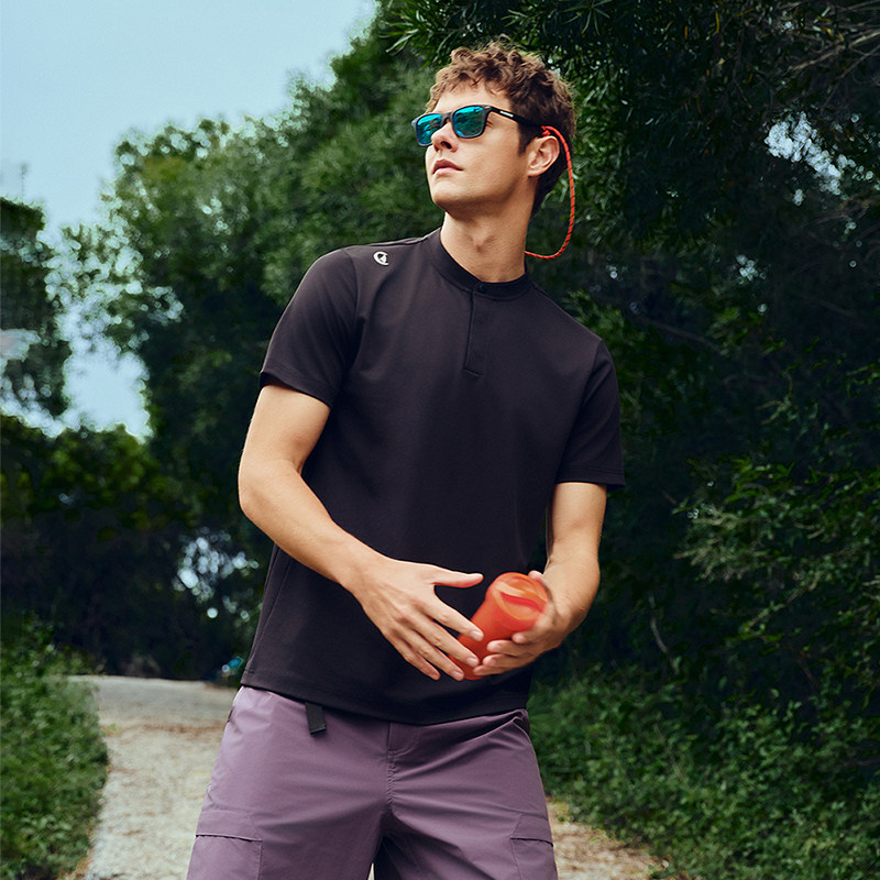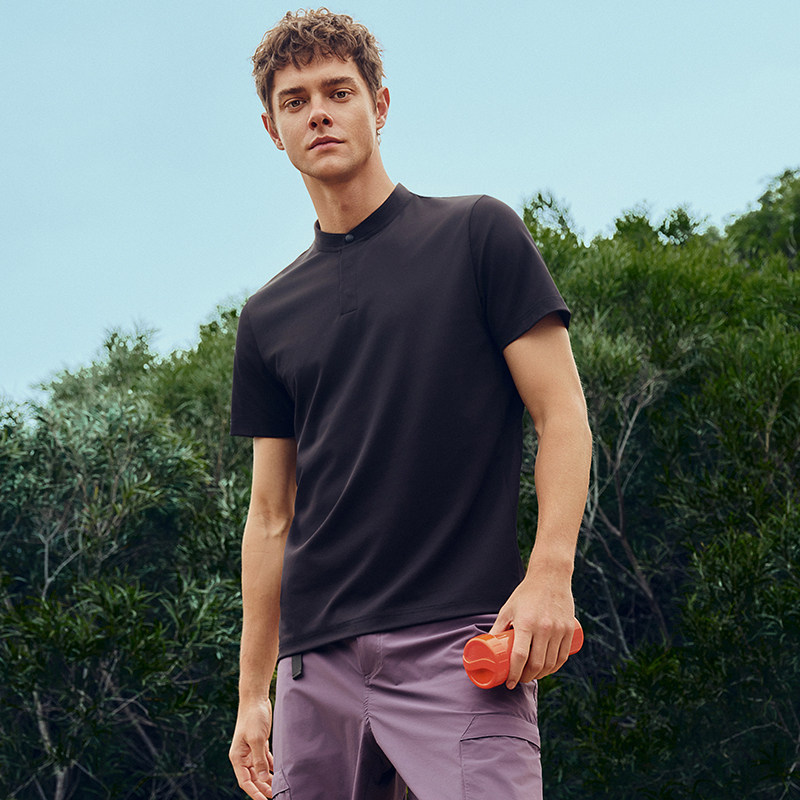 Navigare意大利小帆船速干立领短袖T恤男2026夏季户外黑色套头衫