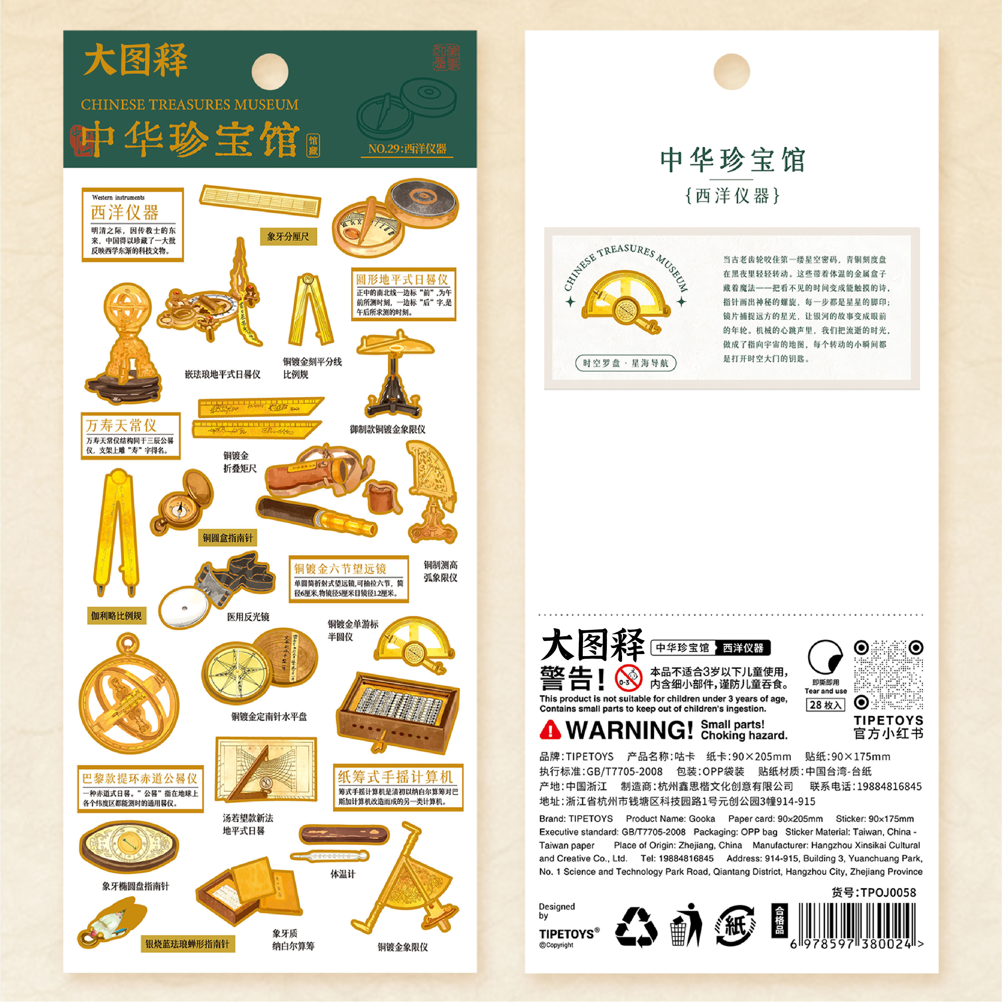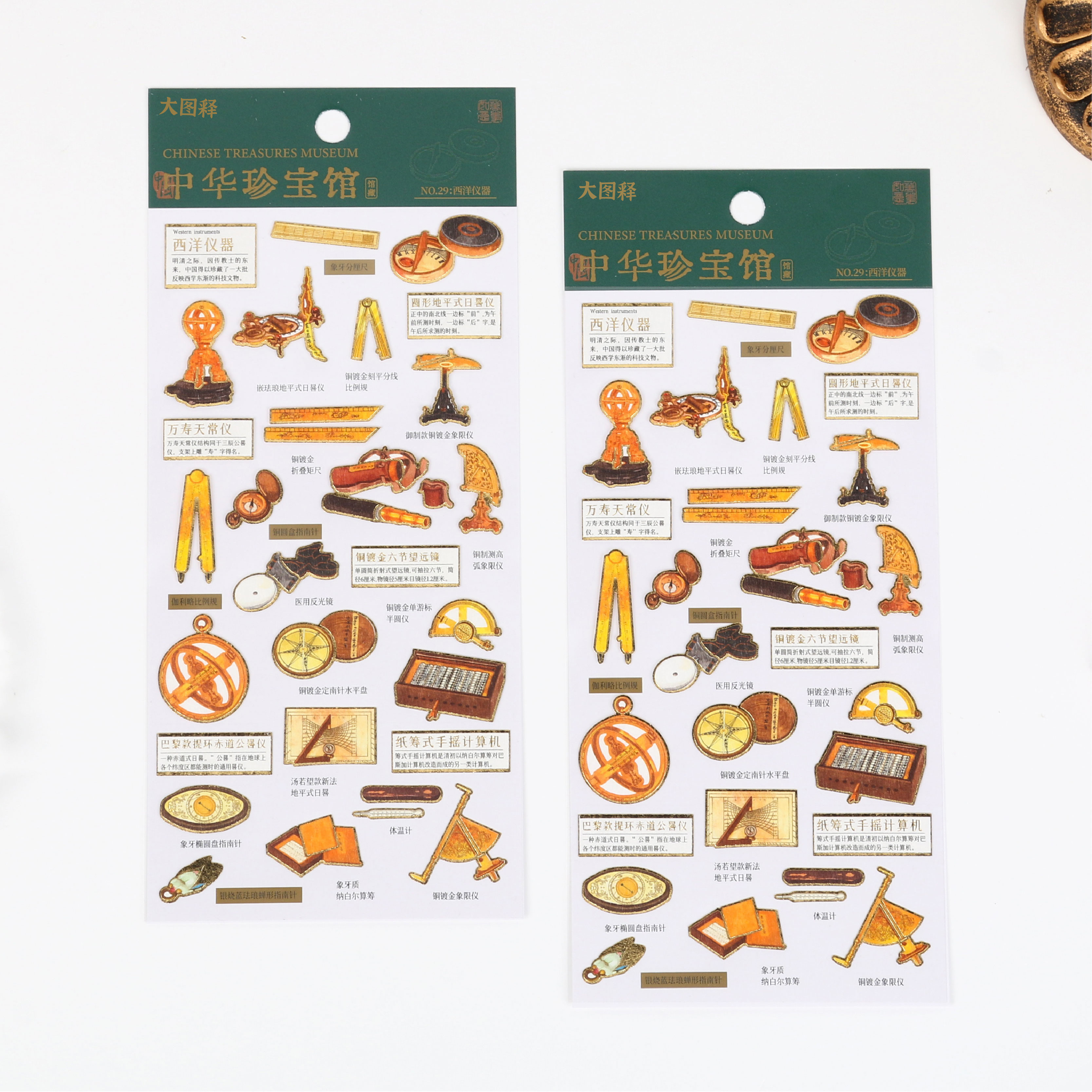【大图释官方授权】国潮文物中华珍宝西洋仪器量尺望远镜指南针装饰diy手工自粘手账素材手机壳贴纸标签贴画