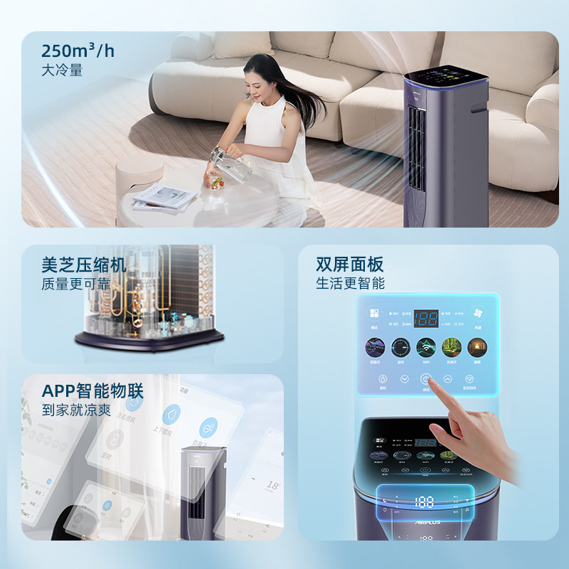 美国Airplus移动空调冷暖体进口压缩机家用塔式空调扇制冷免安装