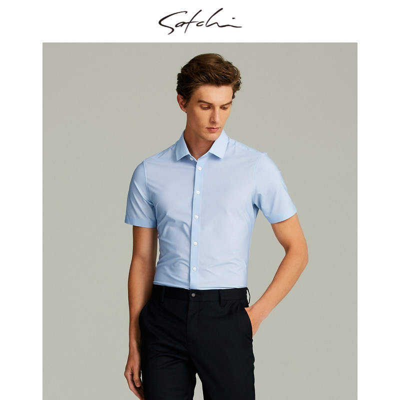 SATCHI沙驰男装商场同款男士短袖衬衫商务休闲衬衣88SCA8212012