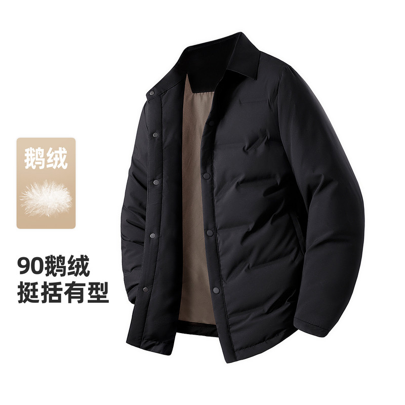 雪中飞2025冬新款鹅绒男士短款翻领夹克羽绒服商务休闲保暖爸爸装