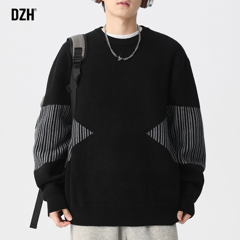 宽松 套头 男女同款 情侣装 毛衣 针织 拼接