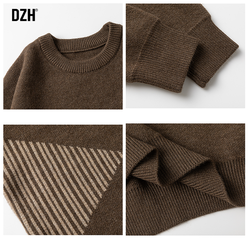 男生咖色毛衣男圆领冬季潮牌2025新款套头针织衫长袖上衣加厚线衣