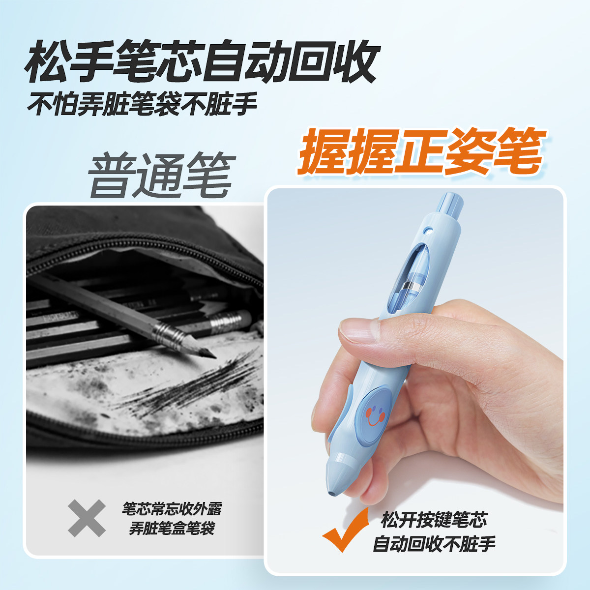小写星握握笔正姿自动铅笔幼儿园矫正握笔姿势控笔训练器握对出芯