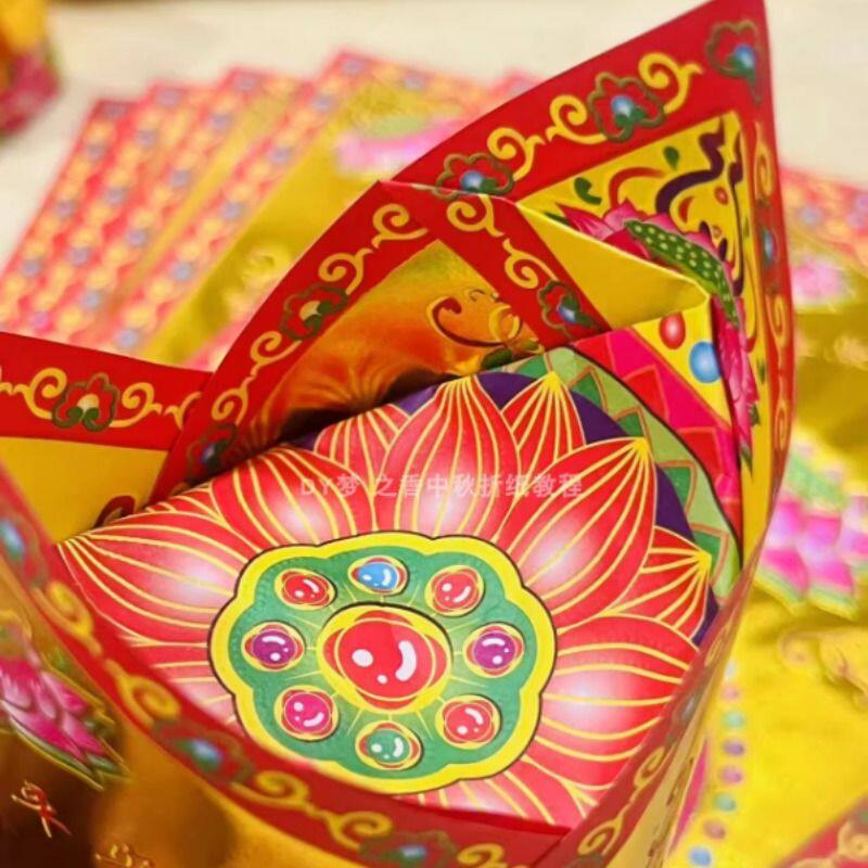 新款大号烫金长条纸可折官宝花篮底座金莲花28cmX12.5cm