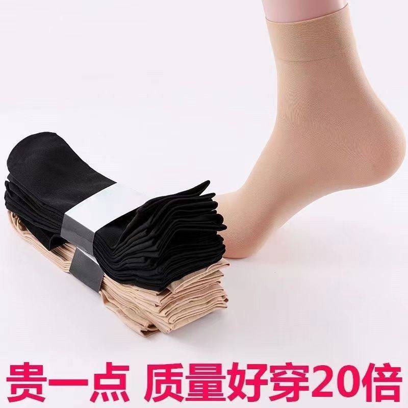浪莎丝袜女春秋薄款水晶丝短袜耐磨防勾夏季黑肉色棉底袜子中筒袜
