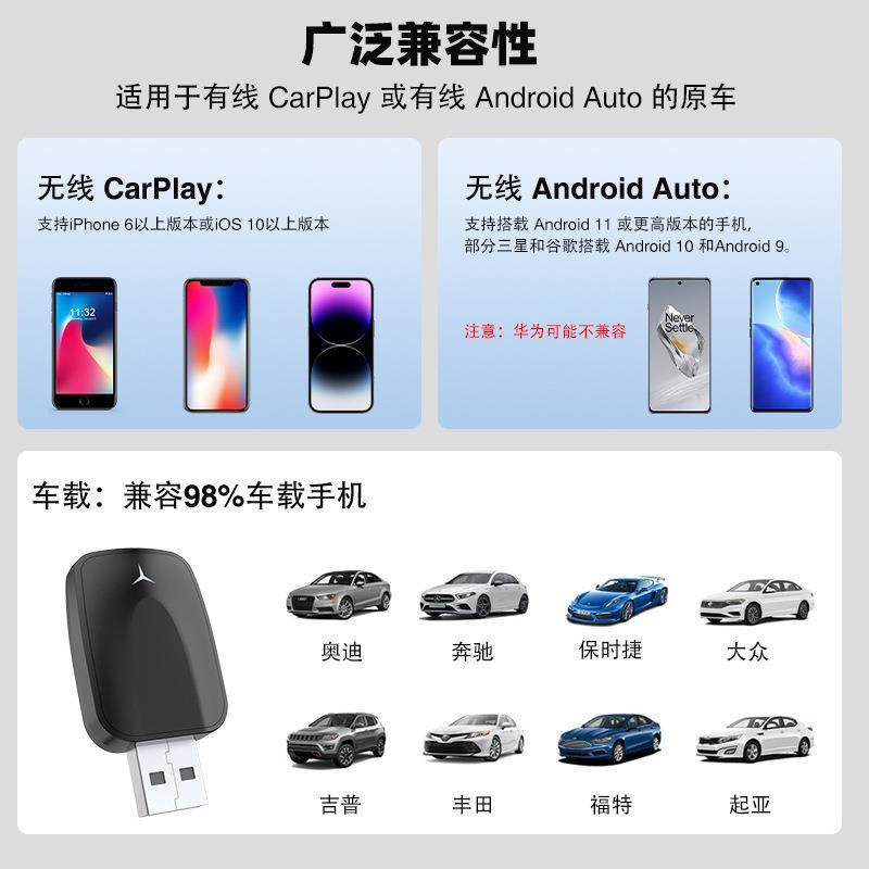 二合一无线carplay便捷汽车导航互联安卓盒子有线转无线CarPlay