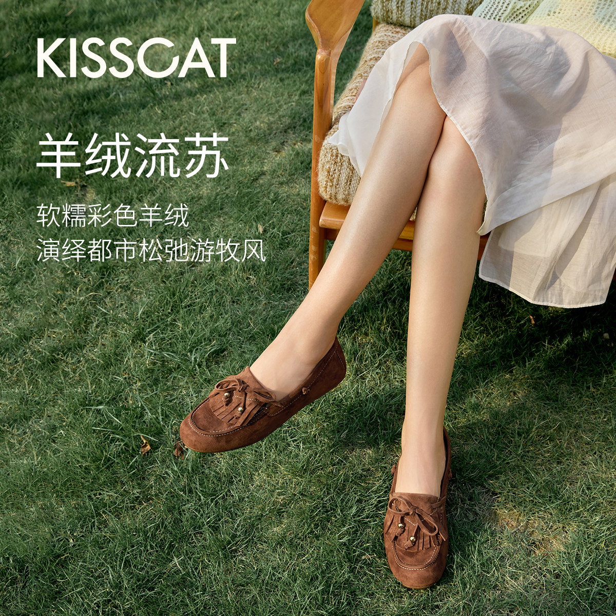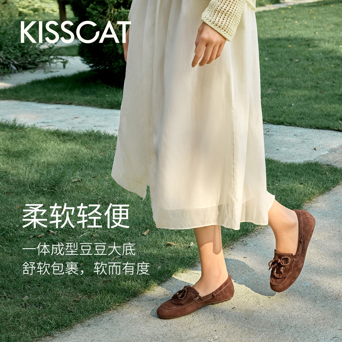 KISSCAT接吻猫[好彩系列]豆豆鞋舒适一脚蹬绒面乐福鞋软底不累脚